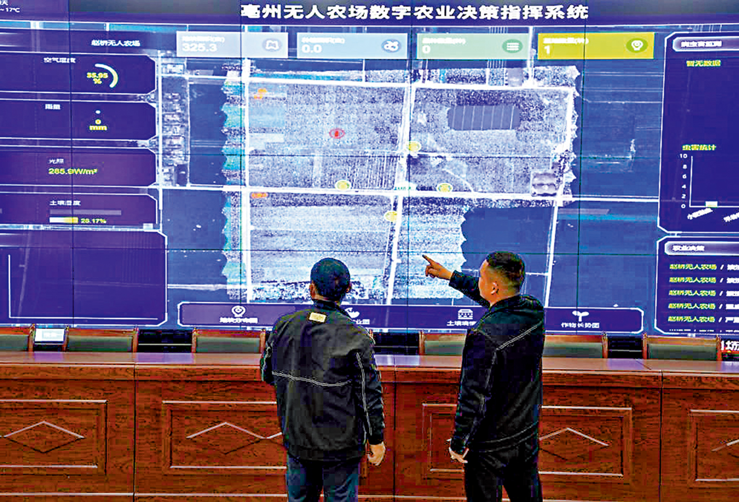 安徽省亳州市譙城區焦魁農機專業合作社是國家級示範社,理事長焦瑞一直致力於用科技助推農業發展。他介紹,2022年建成安徽省首家「無人農場」。該農場佔地1030畝,採用北斗、物聯網、大數據、人工智能、5G、機器人等新一代信息技術,勞動生產率提高70%以上,單位面積產量提升10%以上。節本增效,畝均年收入要比普通農場增約450元(人民幣,下同)。