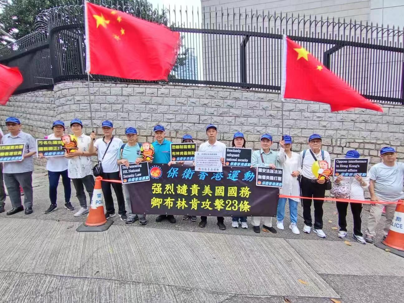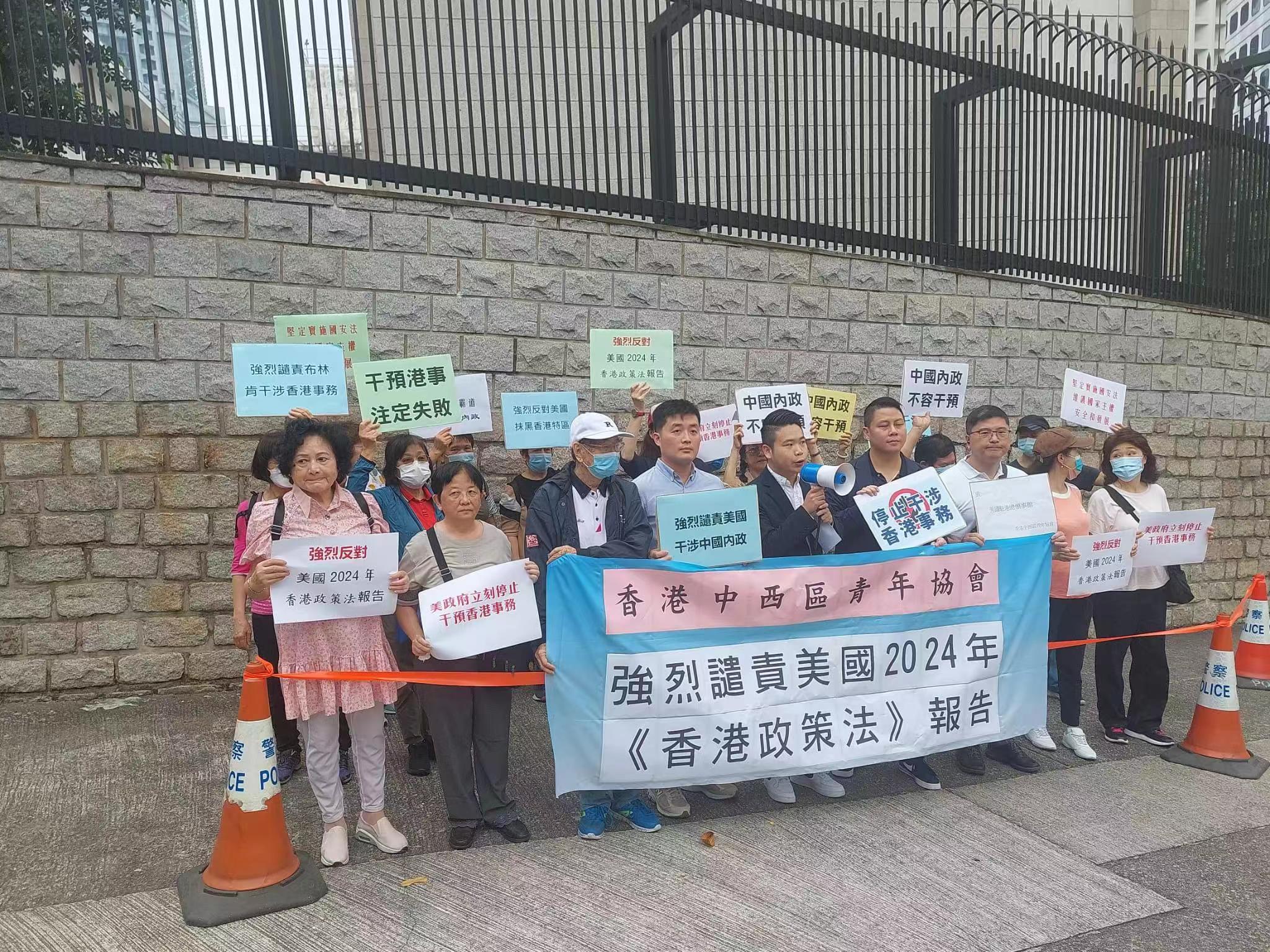 大公文匯全媒體報道,美國國務院日前發布所謂「2024年香港政策法報告」,美國國務卿布林肯亦發表相關聲明,肆意攻擊香港《維護國家安全條例》的實施,詆毀香港法治、民主、自由、人權狀況,甚至揚言「制裁」特區官員。多批市民及團體今日(4月1日)前往美國駐港領事館外抗議,譴責美國粗暴干涉香港事務,敦促立即停止說三道四抹黑香港。