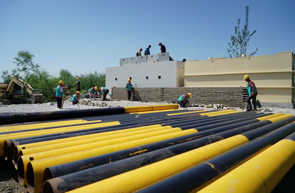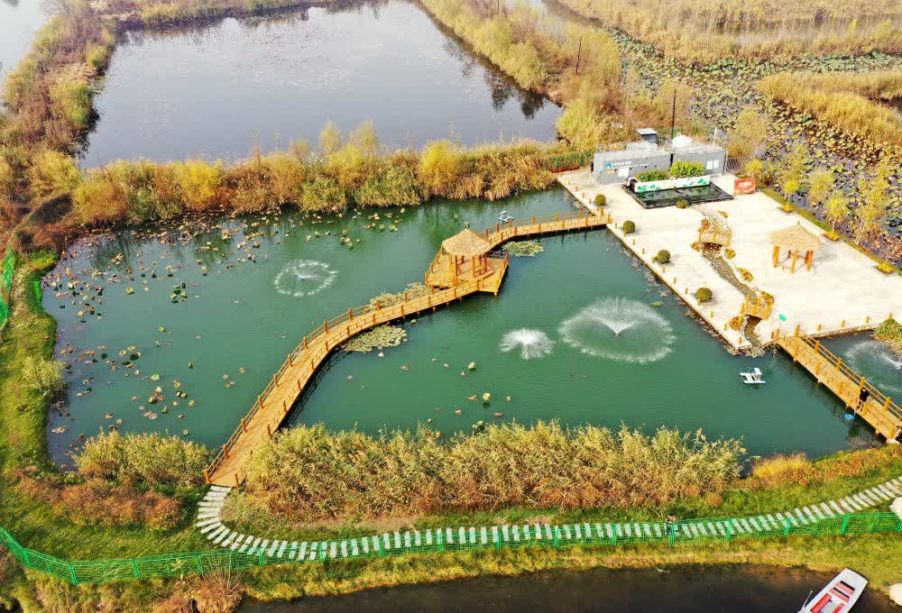 2019年夏,白洋淀望月島一派火熱的施工場景,工人們忙着安裝污水凈化設施。2020年秋,我再次登島,只見這裏的一體化污水處理裝置已投入使用,新建成的遊園裏隨處可見亭台、步道、噴泉等景觀,讓人心曠神怡。