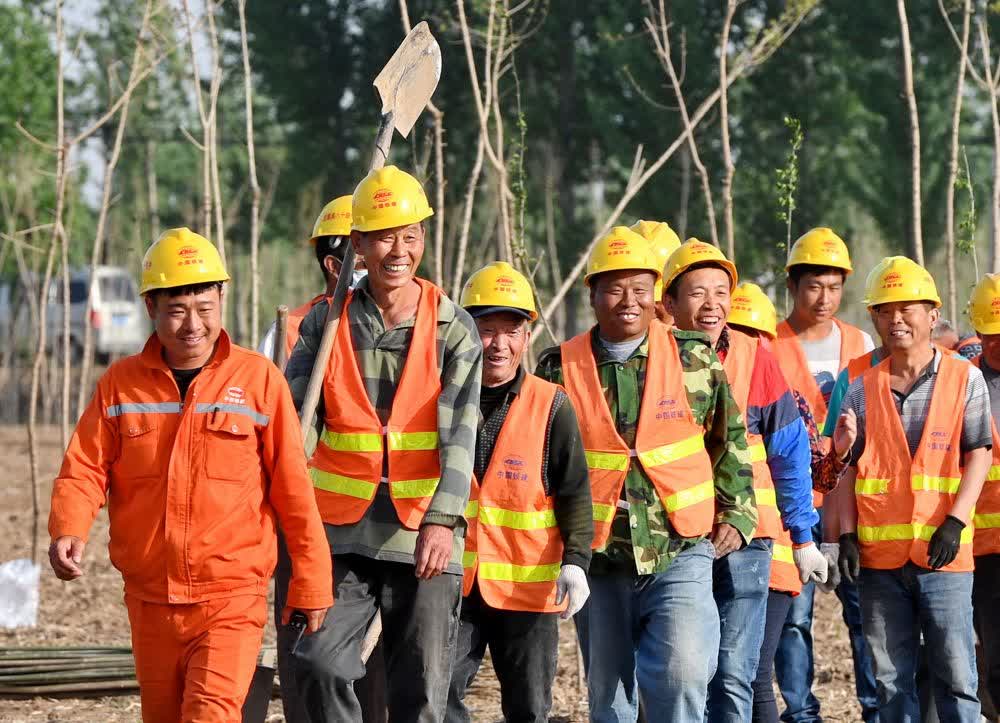 在「千年秀林」施工現場,數以千計的植樹工人們,用杴鎬的叮叮噹噹,譜寫出造林的交響曲。曾在黃土裏摸爬滾打的當地農民成為造林的主力軍,為「雄安綠、新區藍」添枝加葉。一鍬一鏟,一俯一仰,秀林建設者以朴實的方式,表達着對新區的憧憬、對未來的嚮往。