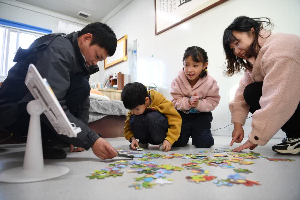 項目部一間十平方米大小的宿舍,成了李輝一家四口臨時的家。工地內的圖書館、展室、食堂,都成了李輝一家休閒娛樂的場所,李輝到工地巡檢時也常常帶上家人,「要讓小傢夥們看看爸爸工作的環境。」人世間難得的團圓,在寒風呼嘯的嚴冬中愈顯珍貴,也為我的雄安新區報道增添了一抹溫情。