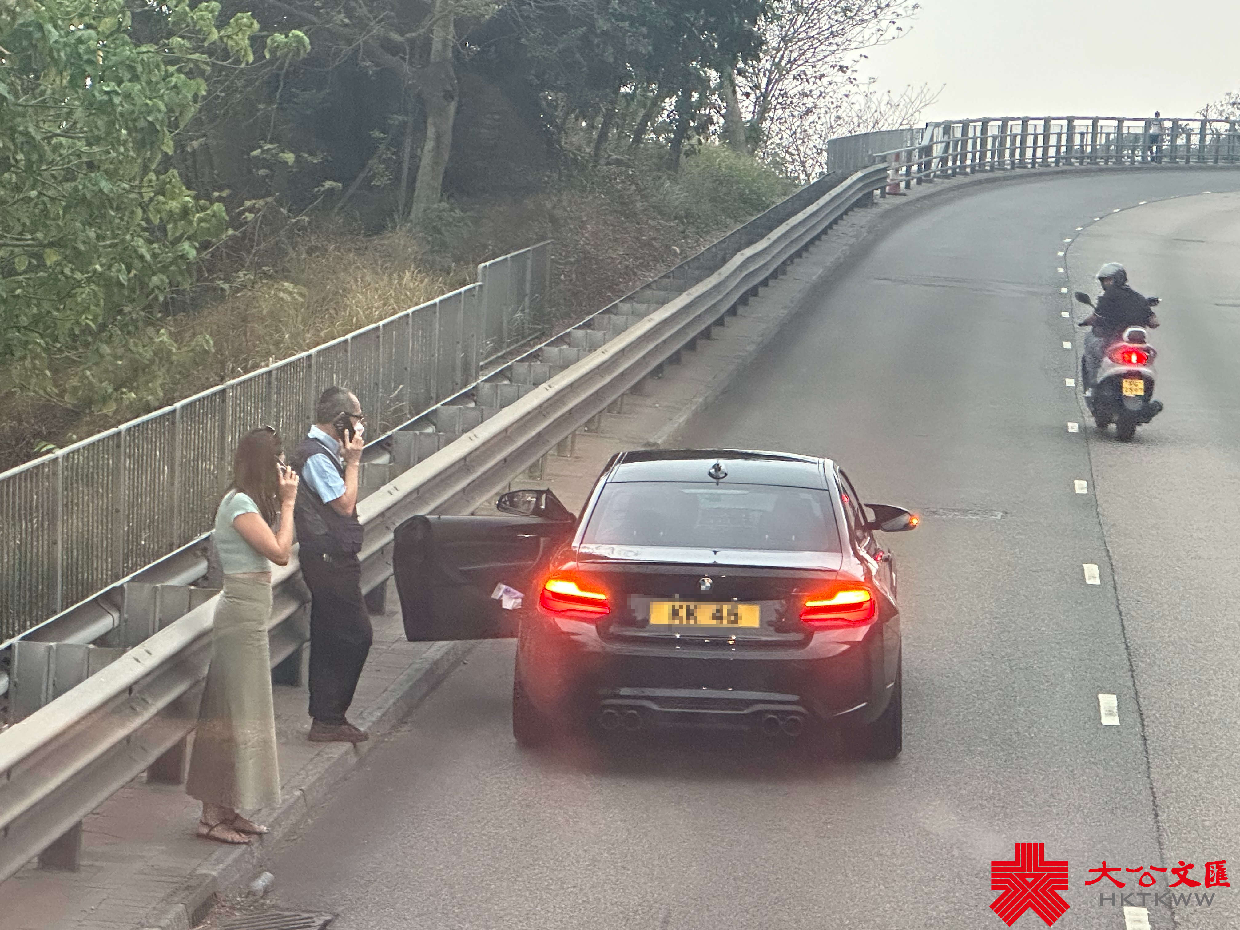 大公文匯全媒體報道,今日(4月2日)下午約6時20分許,香港仔石排灣道往薄扶林方向近田灣位置發生交通意外,一架城巴971號線(往海麗邨方向)與黑色私家車相撞。據大公文匯全媒體記者現場所見,現場交通堵塞,龍尾延至香港仔海濱公園。
