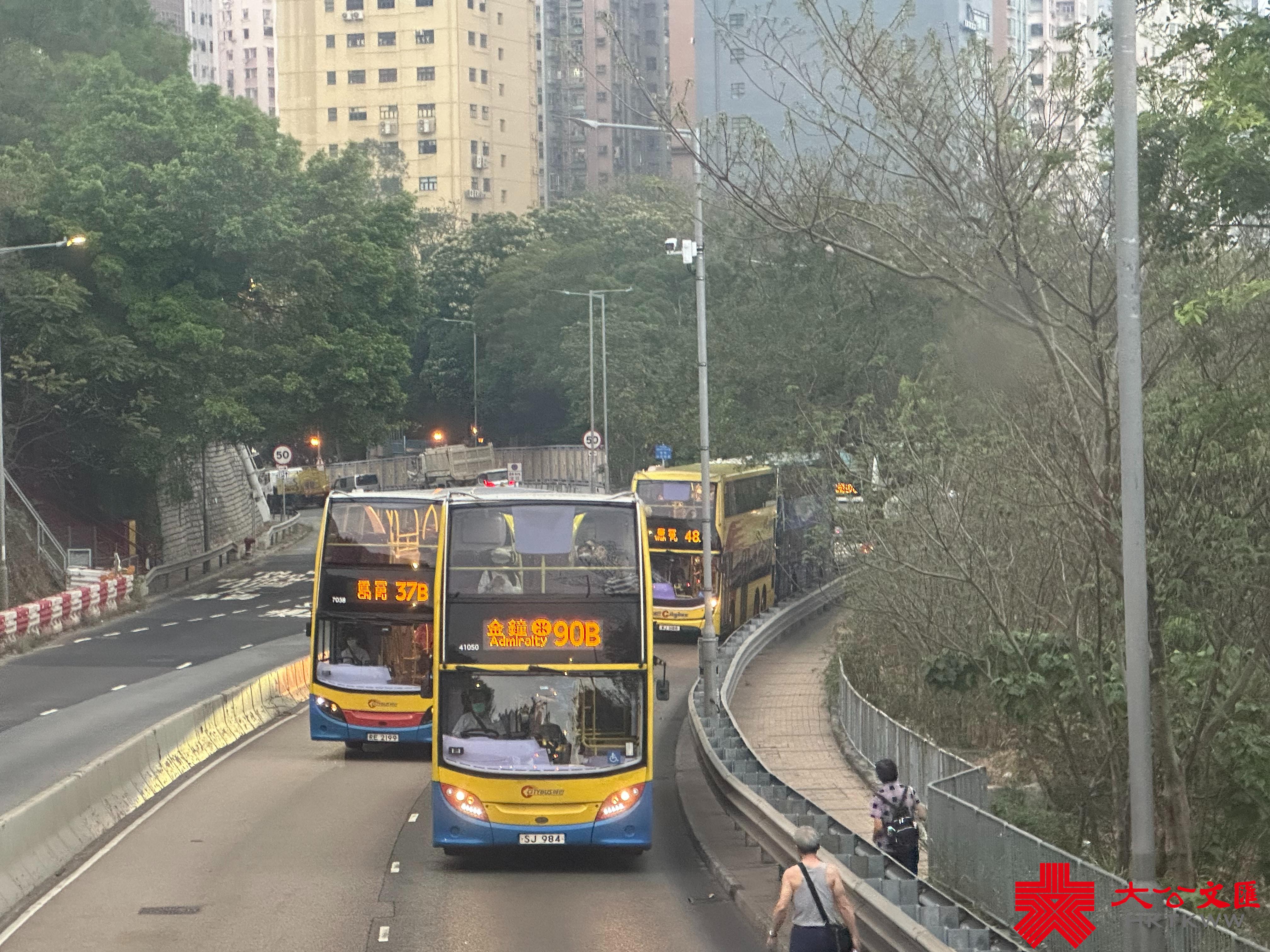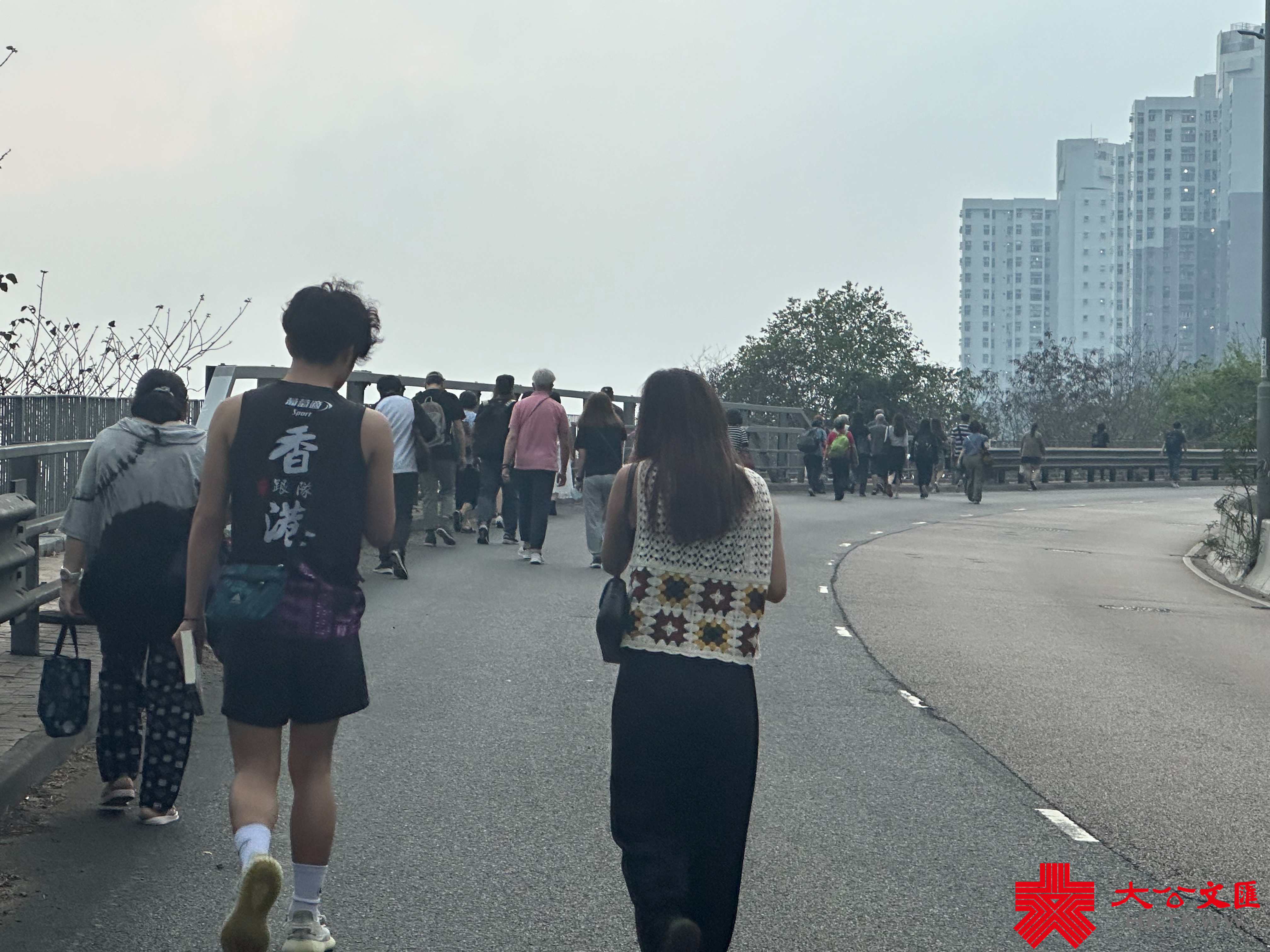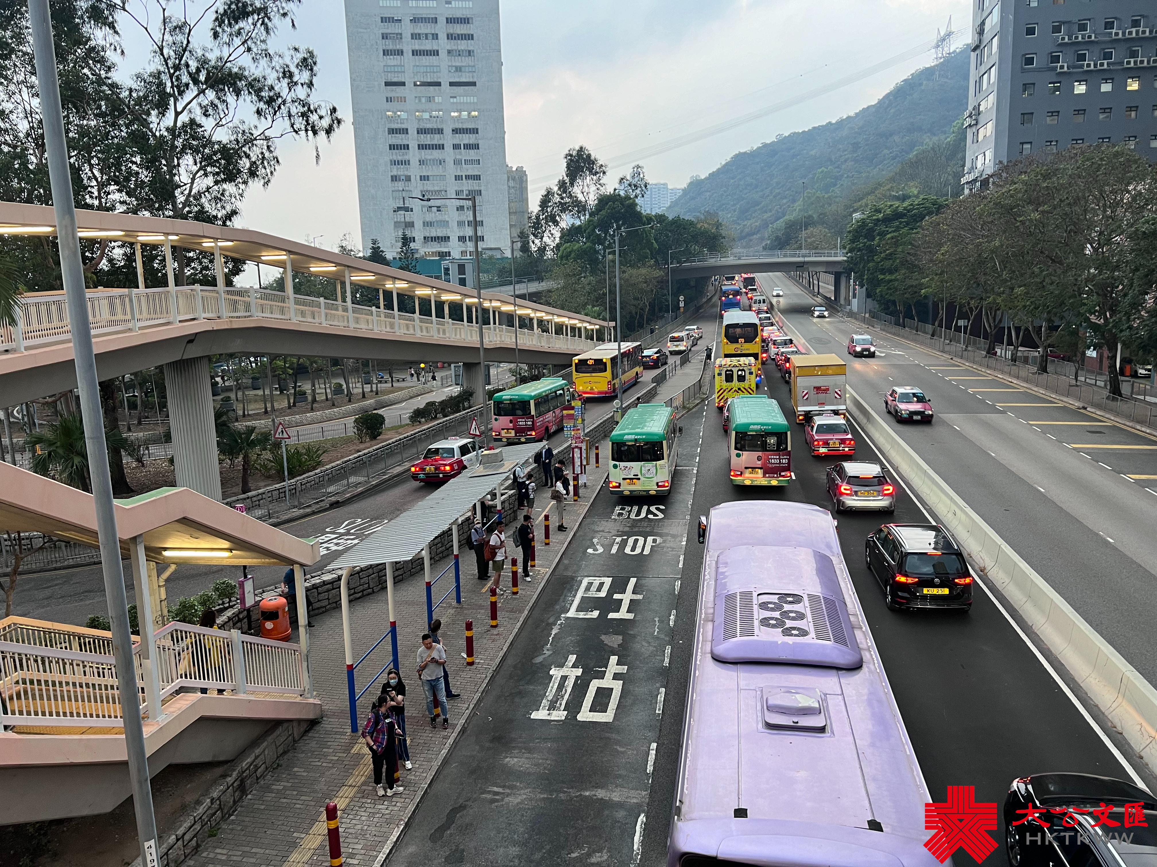 事發地點的巴士大排長龍,乘客紛紛下車步行。有現場市民幽默形容:「好似去拜山」。