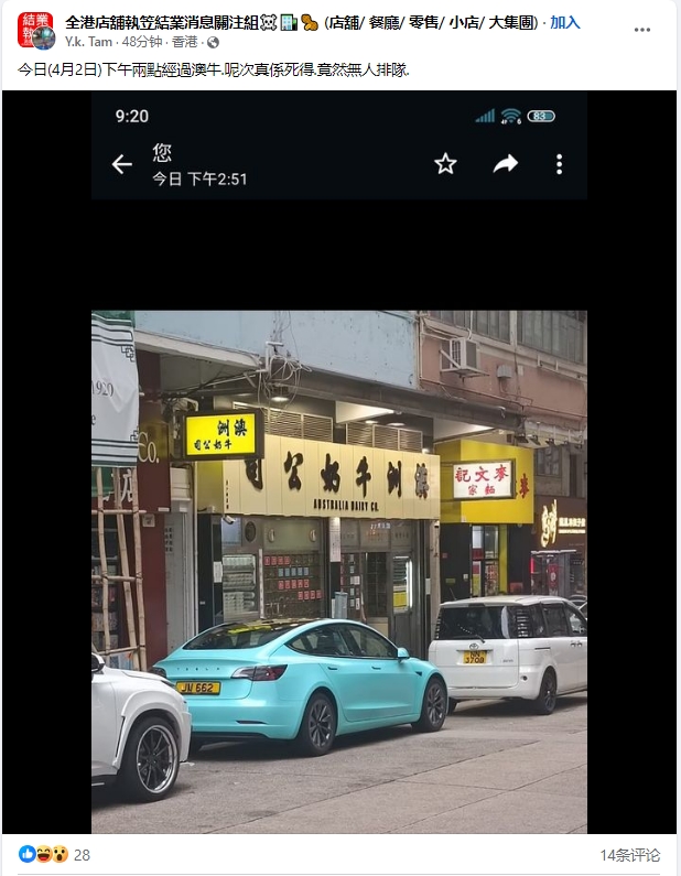 (大公文匯全媒體 特約記者 陳惠芳)市民趁復活節假期北上或外遊,本地零售餐飲業再面臨挑戰,曾有飲食界人士估計未來將有三千間食肆結業。日前(30日)網上流傳一張佐敦人氣茶餐廳「澳州牛奶公司」(澳牛)門可羅雀、人龍不再的照片,引起網民熱議。
