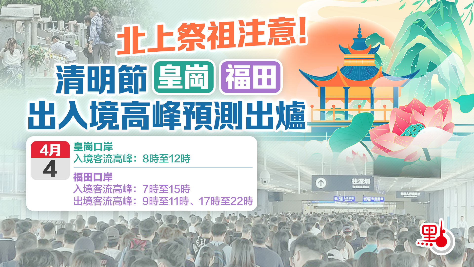 皇崗出入境邊防檢查站預計,清明節假期期間福田口岸日均出入境客流將達到19.7萬人次。皇崗口岸北上的入境客流高峰將出現在4月4日8時至12時、4月5日至7日每天23時至次日1時30分,返港出境客流高峰預計出現在4月7日16時至次日2時;同樣,福田口岸入境客流高峰將出現在4月4日7時至15時,出境客流高峰預計出現在4月4日、4月7日9時至11時、17時至22時。