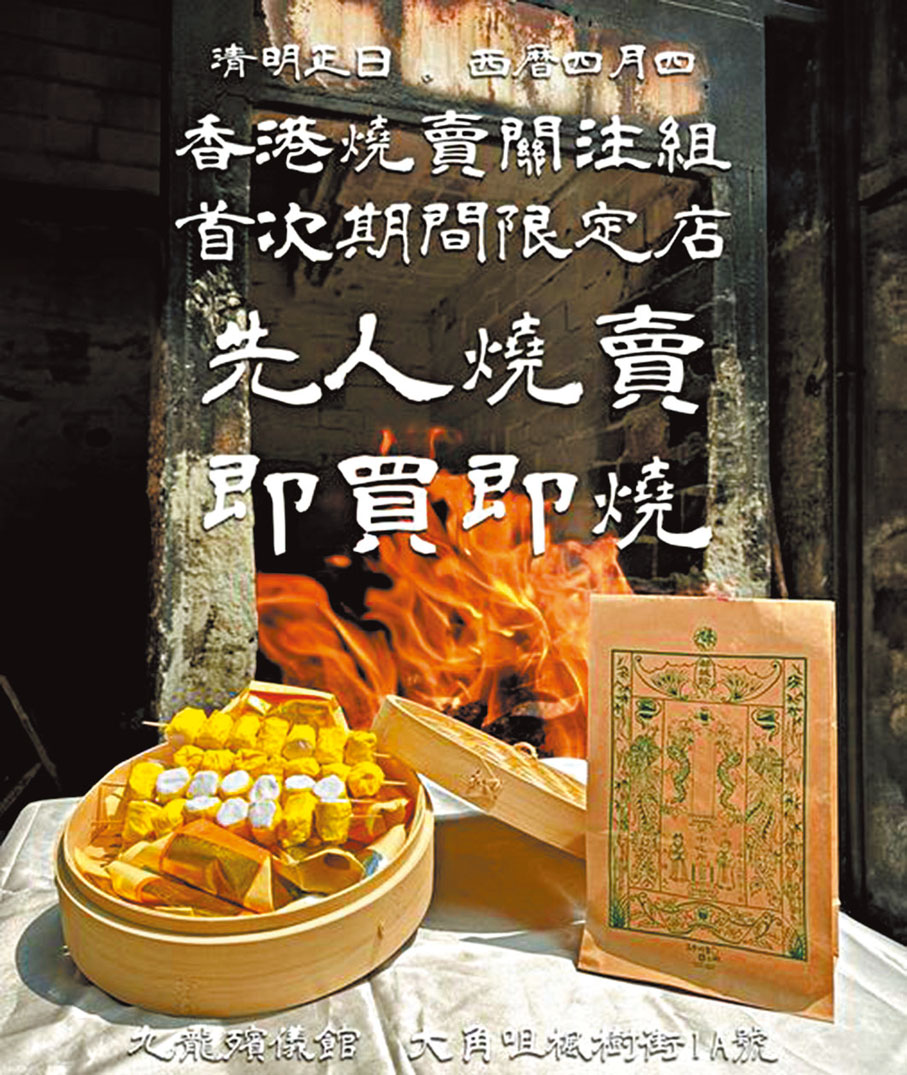 有團體認為,清明是一次生死教育,今年特意推出售價低至89元的紙紮燒賣套裝,「香港燒賣關注組」透露,今日會在九龍殯儀館外擺檔販賣燒賣,供市民「即買即燒」,向先人表達心意。「先人燒賣」的餡料是金銀紙,一串7粒,每套共有3串,將配以附薦袋及封條。