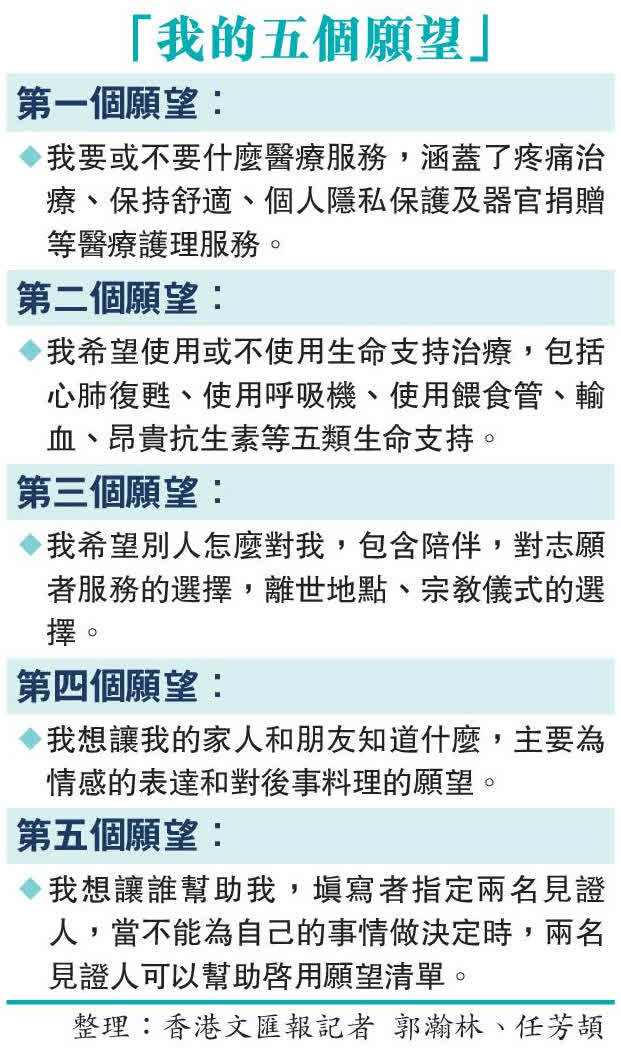 「我一位老同學前年因突發心腦血管疾病,年紀輕輕就去世了。疫情期間也有不少年輕患者沒熬過去,這對我衝擊很大。」於2023年與妻子一起簽署生前預囑的北京「90後」徐先生對香港文匯報記者表示,在突患重病或者遭遇事故、本人無法清楚表達時,能預先了解和醫療相關的各方面意願非常重要,特別是搶救、器官捐贈等重大決策。他們還對自己遭受意外時的個人資料、財產清單、家族成員的聯絡方式做了預案。「死亡是每個人都終將經歷的人生必經之路,及早在各方面做好準備,除了展現對自己負責的人生態度、也是一種給家人的體貼。」
