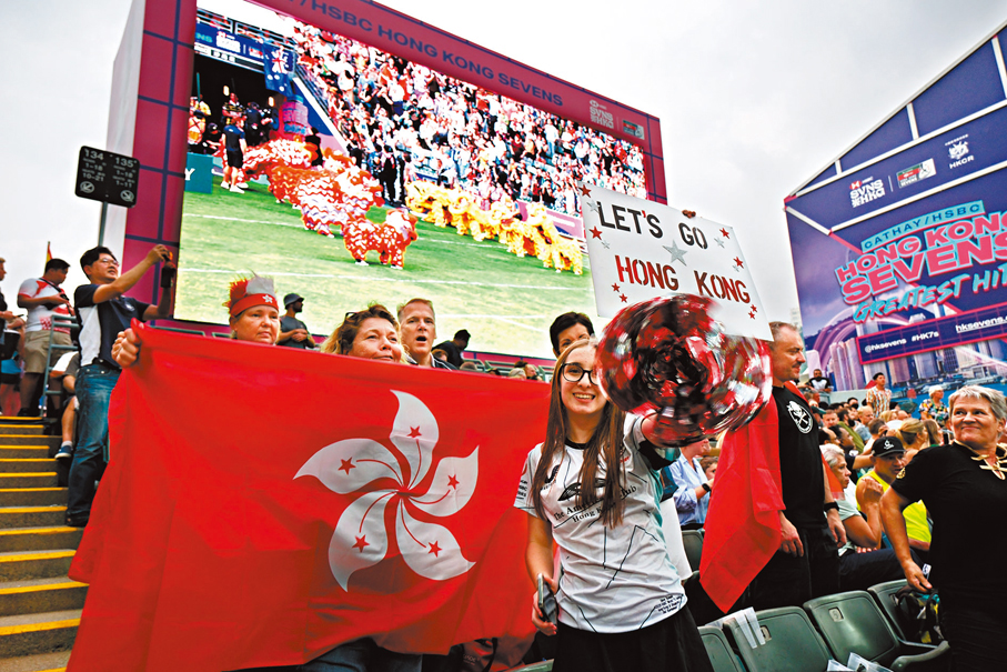 (香港文匯報記者 聶曉輝)萬眾期待的香港國際七人欖球賽昨日起一連3天在香港大球場舉行,洋溢着熾熱的盛事氛圍。一如以往,這個一年一度的國際體壇盛事吸引大批港人、居港外籍人士,甚至專程從內地或海外來港觀賽的旅客聚首一堂,無論球場內外的歡呼聲與喝彩聲均此起彼落,不少觀賽人士身穿代表各隊色彩的「戰衣」支持球隊,更有人以奇裝異服打扮,將球賽變成狂歡嘉年華。今次賽事的門票早已售罄,主辦單位指其中訪港旅客佔門票總銷量多達40%,預計今個周末將有多達12萬人次觀眾齊集大球場觀賽。今屆賽事結束後,七欖將告別大球場,於下屆轉戰即將落成啟用的啟德體育園。