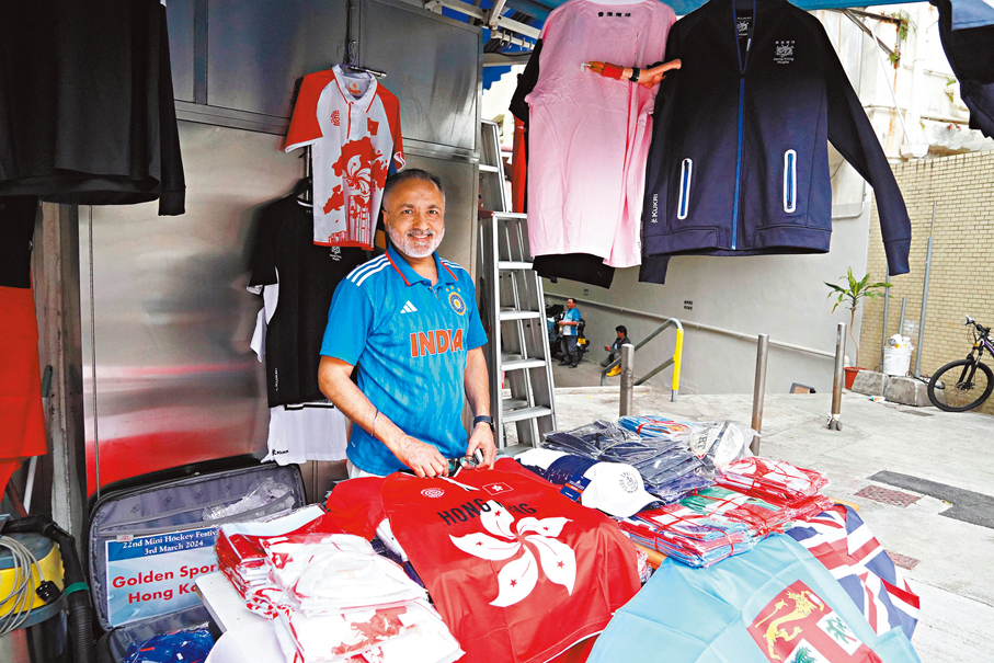 從加路連山道前往大球場的路上,有至少兩檔售賣旗幟、T裇及球衣等產品的攤位。其中一名居港30年的印度裔檔主Jassi Gill表示,十多年前起已在七欖賽事期間擺檔,產品由每支100元的旗幟到一件700元球衣不等。由於昨日只是首天賽事,銷情與之前差不多。他續說,即使明年賽事移師至啟德體育園上演,他也希望繼續在球場附近擺檔。
