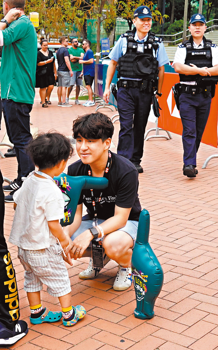 港人袁先生首次帶同兩名分別3歲及不足1歲的兒子入場觀賽及打卡,「我去年首次來感受一下這項大型盛事,今年帶埋小朋友來,覺得今年的氣氛更勝去年。」他又認為,特區政府積極舉辦多項盛事有助帶動經濟,「人們常說香港被新加坡比下去,但我早前到新加坡公幹所見,香港並不差,重點是政府等有關部門如何把資源投放得更好。」