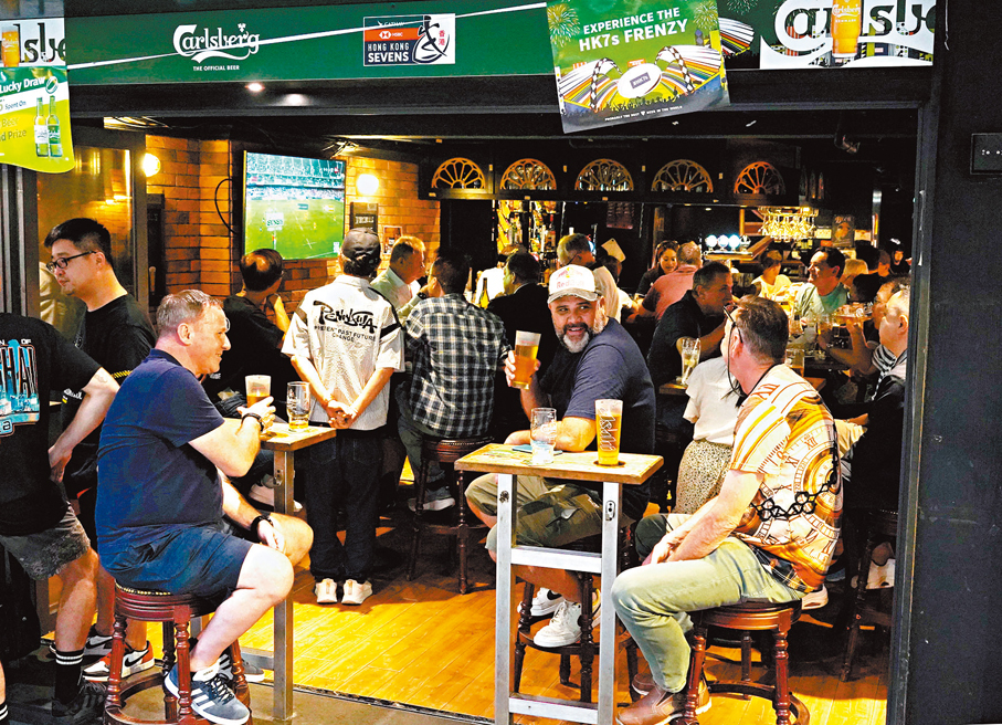 香港文匯報記者昨日傍晚亦到灣仔駱克道一帶的酒吧直擊,發現不少酒吧均提供七欖賽事的現場直播,店內亦掛上賽事的宣傳海報。部分酒吧堆滿着正在凝神觀賽的顧客,有店員指顧客數目比平時多約三成,但店方並無為3天的生意增長率作估算。