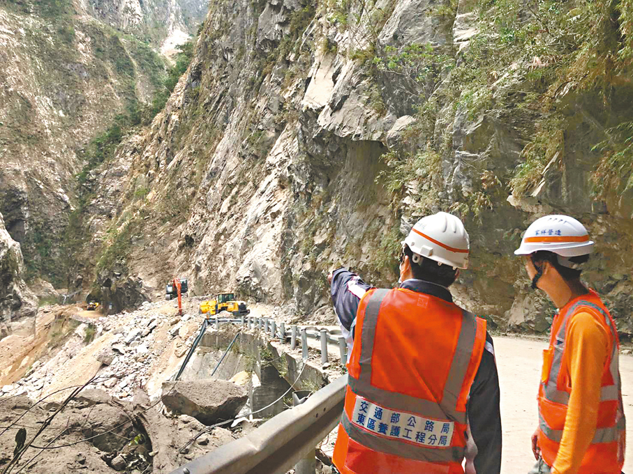 花蓮強震重創東部鐵公路運輸,儘管台鐵昨已恢復正常通行,不過公路仍有多處路段持續搶修,由於餘震不斷,也造成搶修困難,公路局東區養護工程分局長林文雄表示,中橫公路九曲洞前平均每十分鐘就有一次落石,再加上山區強風,無人機使用也受限,台八線中橫公路全面修復時程仍未明朗。