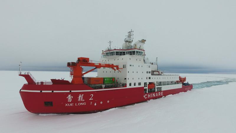 「雪龍2」號是中國第一艘自主建造的極地科考破冰船,全長122.5米,闊22.3米,排水量近1.4萬噸,最高航速每小時27.78公里,具備世界首創艏艉雙向破冰功能,可原地360度自由轉動。裝足燃油、淡水和食物後,可以90天中途不補給下活動,續航力2萬海里(約3.7萬公里),接近可以環繞地球一圈。本次科學考察行程中最突出的亮點是上月「雪龍2」號在南極羅斯海成功建設了「秦嶺站」。