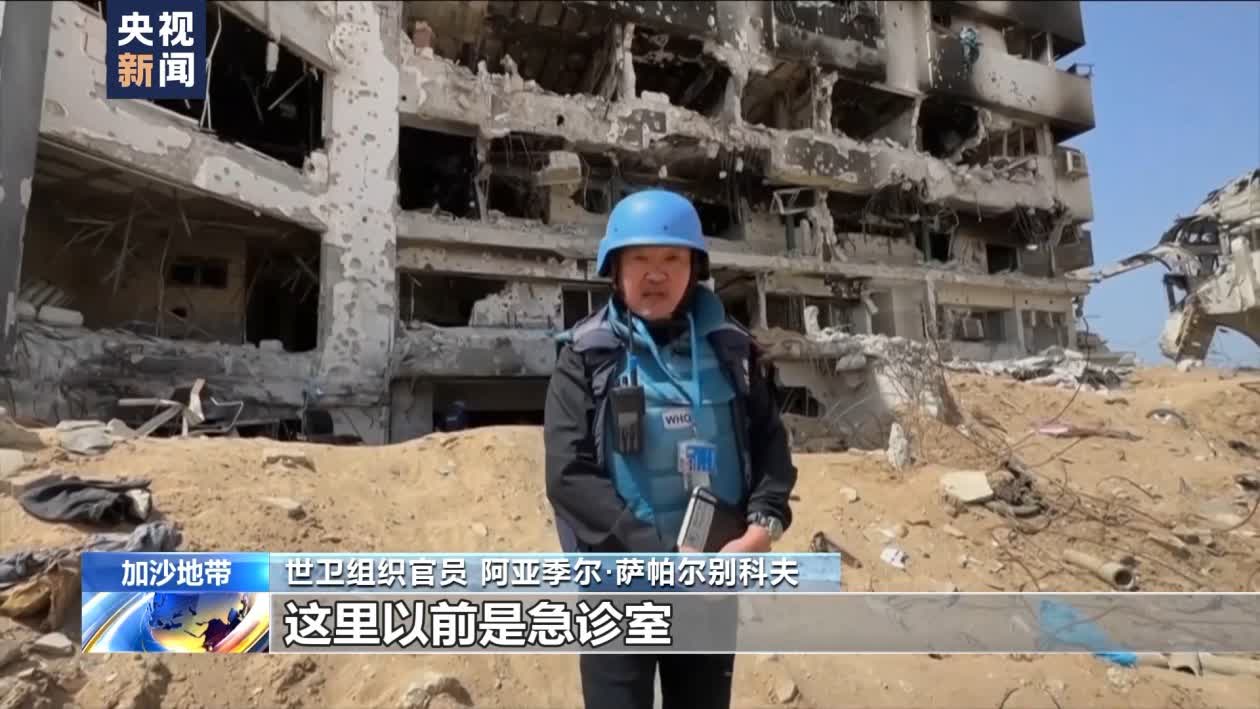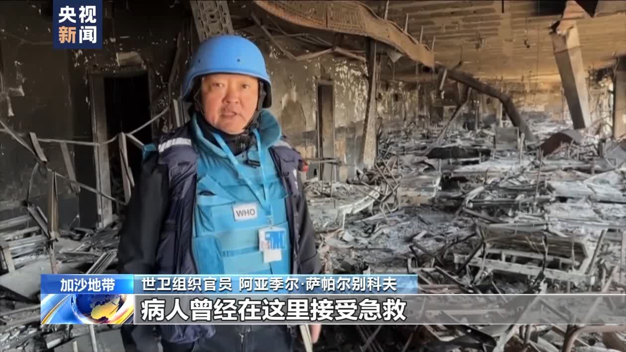 世衞組織官員 阿亞季爾·薩帕爾別科夫:我現在身處加沙地帶最大的醫院——希法醫院的急診室。不幸的是,正如你們在我周圍看到的,這裏只剩下瓦礫。過去,這裏有病床、氧氣管道、醫生和病人的房間,病人曾經在這裏接受急救。但不幸的是,現在一切都被燒燬了,正如你們在我身後所看到的,急診室裏什麼也沒有了。