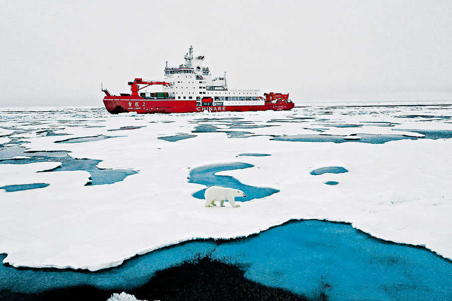 在這片冰雪大地,北極熊才是真正的主人,牠們會以「王者」之姿看向這群來北極做客的科考隊員們。同時,人與自然的和諧相處,讓北極熊放下警惕,在「雪龍2」號周圍戲水。「北極熊在水裏自由翻滾打鬧的樣子,更讓人感覺到保護這片淨土是我們的使命和責任。」趙炎平說。