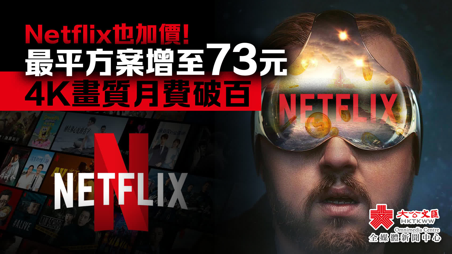 大公文匯全媒體報道,串流影片平台Netflix上調香港月費計劃收費,所有訂閱方案加價10至15元,相等於約13%至16%升幅,當中最平方案加價至73元。