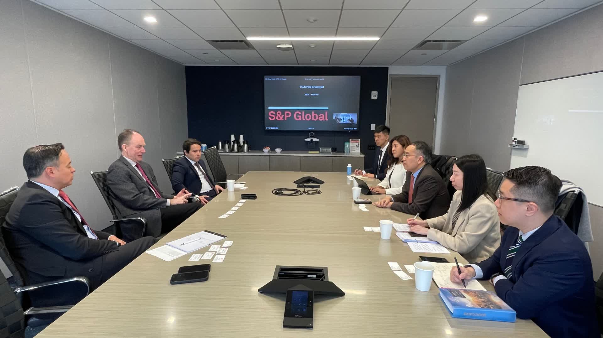 許正宇昨日首先與標準普爾全球評級環球巿場首席經濟學家Paul Gruenwald會面,闡述維持香港金融體系健全和財政狀況穩健的措施。他其後與紐約聯邦儲備銀行行長兼行政總裁John Williams見面,雙方討論環球經濟及利率走勢。