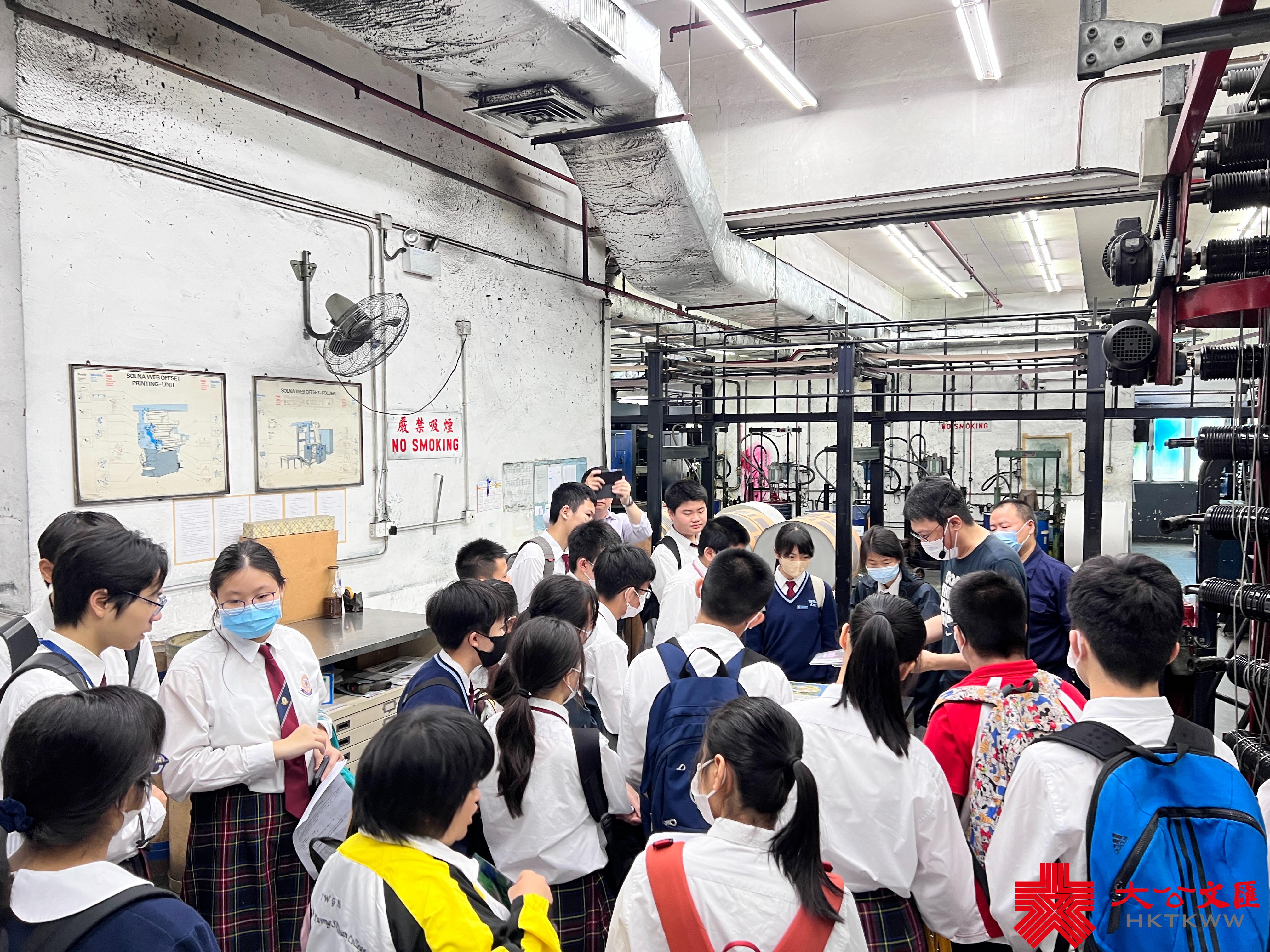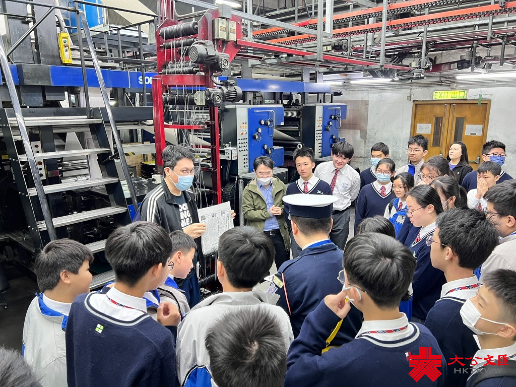 參訪期間,大文集團三友印務行政人事副經理臧志羽講解報紙出版流程,當中包括印版、選料、裝訂、運送、打包等程序。他提到,報紙夜晚印刷,清晨出版,因此,每逢晚上會像打仗般,人來人往,喧囂忙碌,粉塵飛揚。