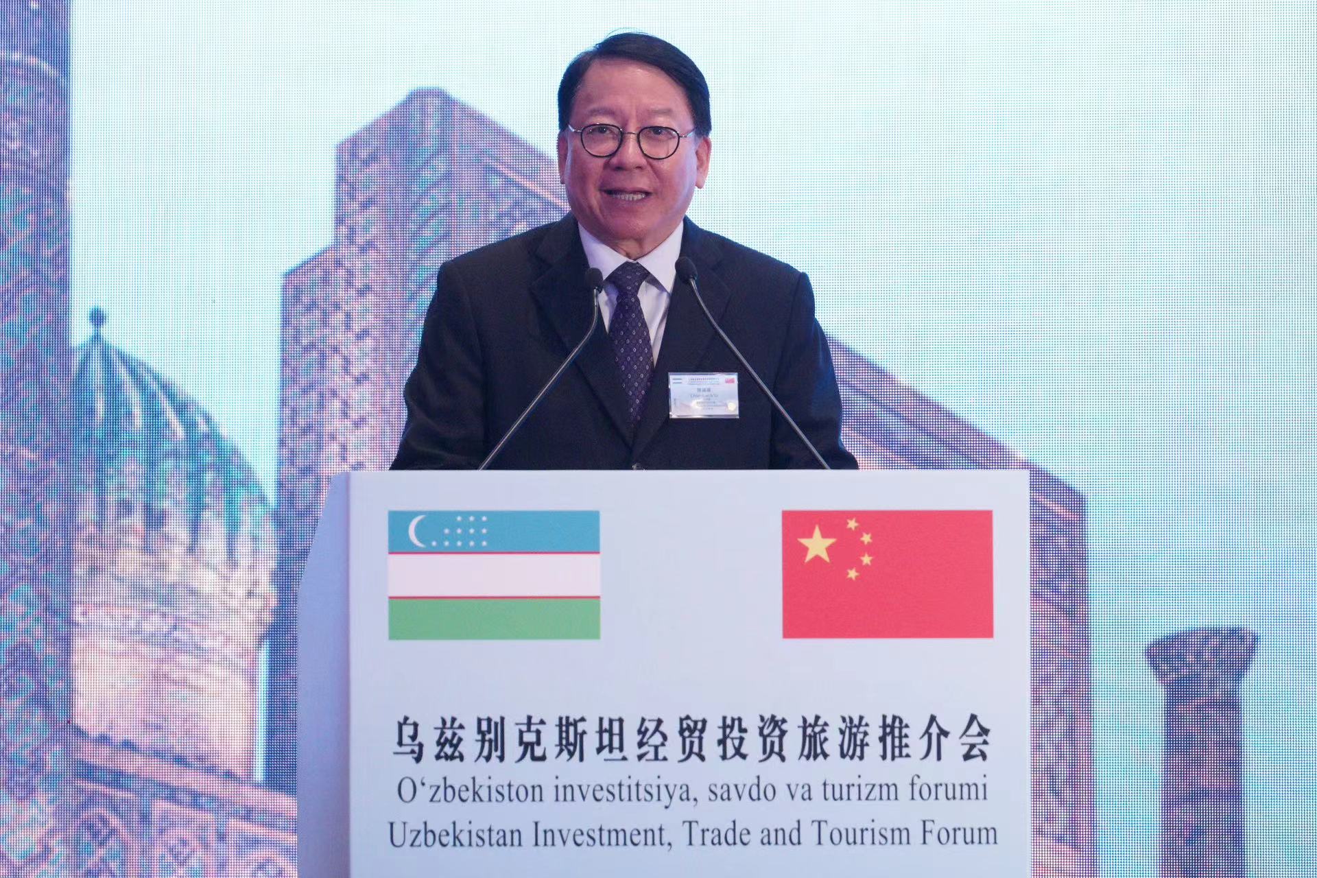 陳國基說,香港珍惜「一帶一路」倡議帶來的巨大機遇,推動這項藍圖在各個領域不斷推進。在貿易方面,香港作為國際貿易中心,推動自由貿易,維持健全的貿易和投資體系,促進資金、人才、貨物和資訊的自由流動,這些優勢使香港能夠持續擴大全球經貿網絡,拓展包括烏茲別克斯坦在內的「一帶一路」市集。他提到,2022年,烏茲別克斯坦是香港在中亞地區最大的貿易夥伴,佔香港與該地區貿易總額約67%。