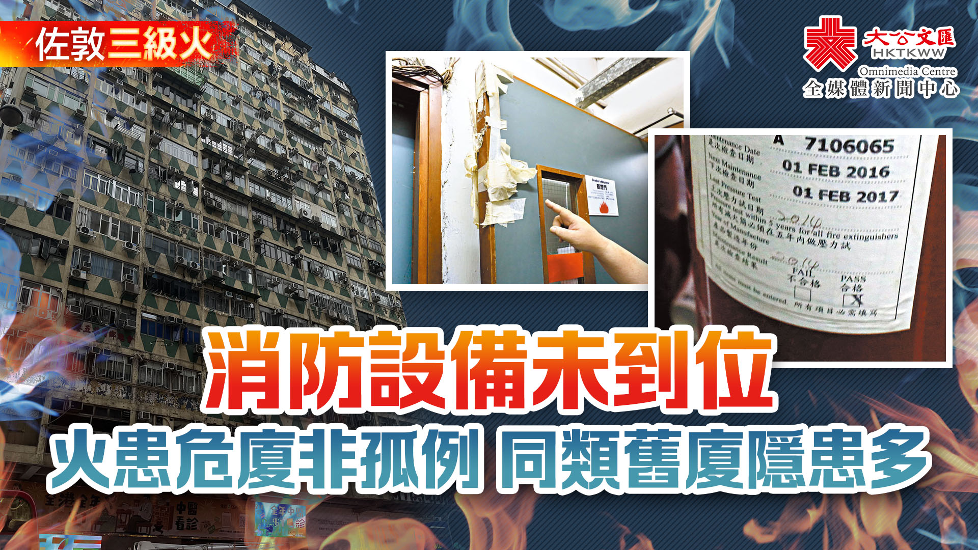 (香港文匯報記者 劉明、張弦)香港特區現有1.35萬幢於1987年落成的舊式商住大廈(即綜合用途及住用建築物),當時消防規例未要求安裝自動噴灑系統、公共照明系統等,直至2007年通過《消防安全(建築物)條例》,特區政府要求有關大廈逐步提升消防裝備。據悉,今次發生奪命大火的華豐大廈早年亦收到相關消防安全指示,但業主未遵從,埋下火災隱患。然而,這不是孤例。香港文匯報記者昨日直擊旺角佐敦一帶商住大廈,不少未按新例提升消防設備,例如未安裝自動噴灑系統、公用地方不見消防栓和喉轆系統,個別樓層沒有緊急照明設施;更有大廈的手提滅火筒經已過期,防煙門亦被長期打開,增加火警發生時「煙囪效應」的風險。
