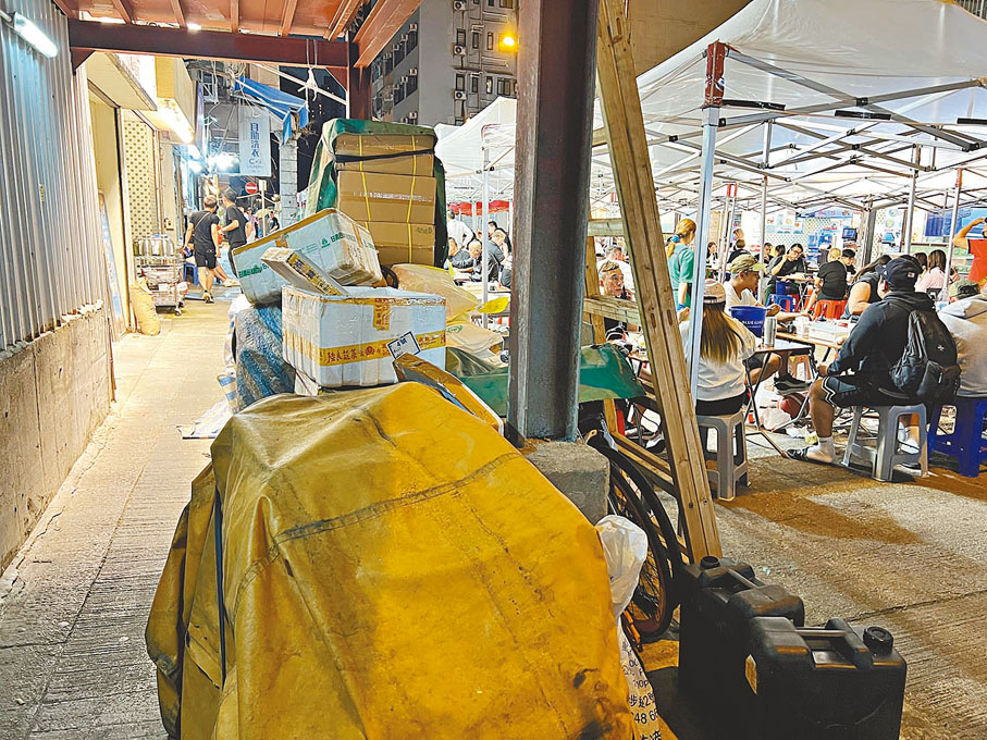 (香港文匯報記者 廣濟)香港疫後復常,市面日漸熱鬧,其中有港版「士林夜市」之稱的油麻地廟街更是愈夜愈旺,但香港絕不能因為谷經濟而容忍違法行為。香港文匯報記者近日發現,廟街有兩間食肆相當「無法無天」,無牌之餘更公然阻街,霸佔店前四米空地擺放大量枱椅招待食客,只留出兩個人的身位通道。後巷衞生環境欠佳,廚餘、清潔工具等各種雜物堆積如山,樓上居民更長期飽受噪音滋擾。有地區人士表示,該兩間食肆由於無牌經營,食環署無法透過釘牌等制度處分,過去發出大量告票,但店方長期無視傳票不出庭應訊。食環署昨日回覆香港文匯報查詢時表示,正根據《公眾衞生及市政條例》(第132章)第128B條,向法庭申請封閉令以採取行動封閉該兩間食肆,保障食客健康,還居民寧靜居住環境。