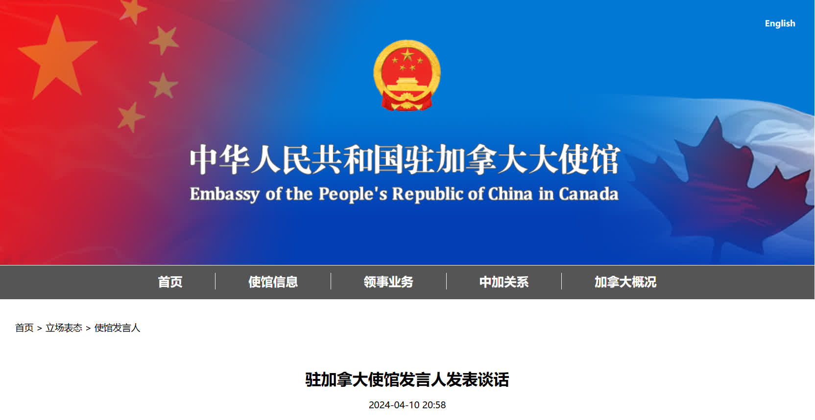 據中國駐加拿大大使館網站消息,4月10日,加拿大總理特魯多在參加「外國干涉」公共調查聽證會期間,污衊中方「有意願」干涉加內政。中方對此表示強烈不滿和堅決反對。