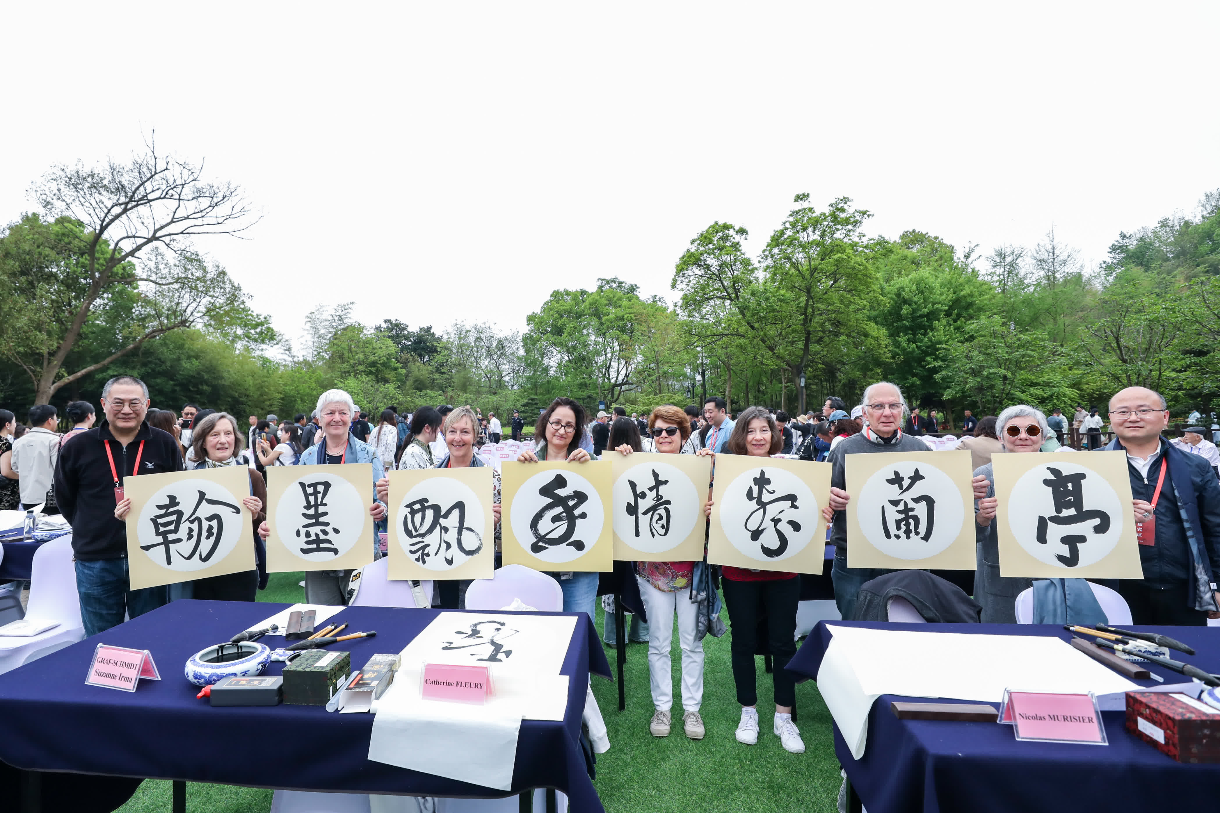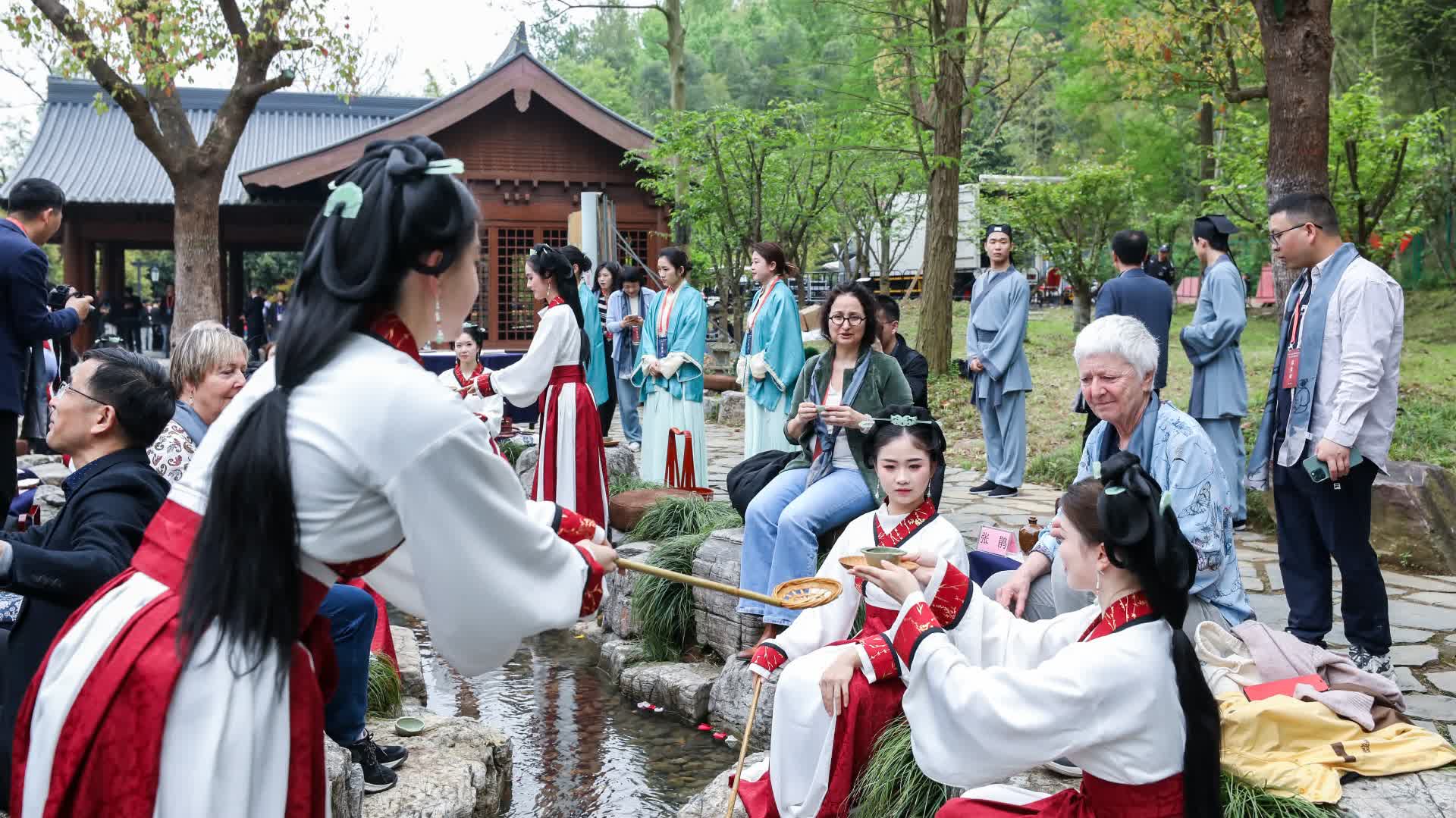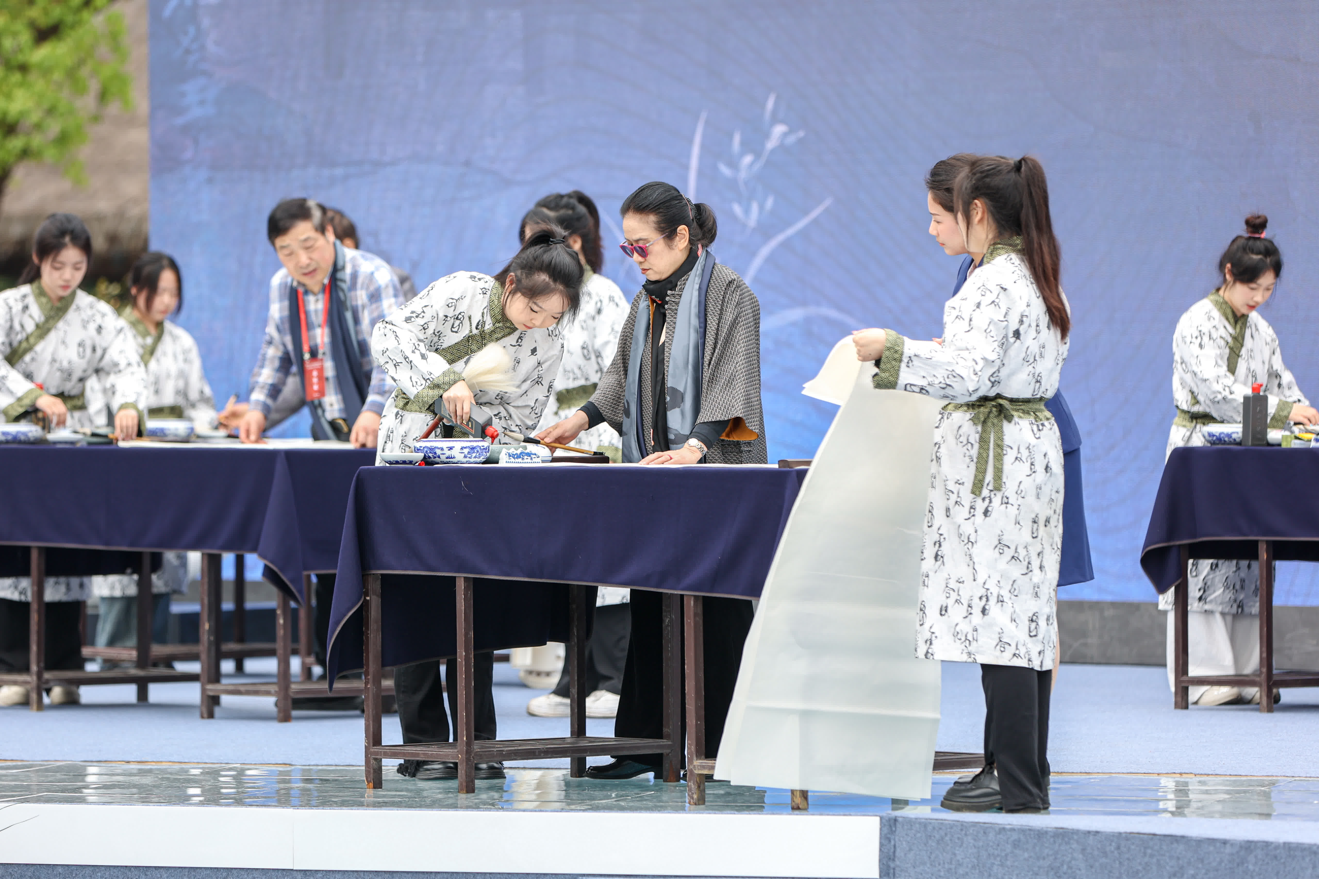 (大公文匯網 記者 茅建興)東晉永和九年(即公元353年)三月初三,王羲之寫下中國書法史上最負盛名的不朽之作《蘭亭集序》,蘭亭由此成為著名的書法聖地。1985年1月,紹興市將每年的農曆三月初三確定為書法節,40年來,每年開春上巳節,蘭亭茂林修竹,群賢畢至,吸引全世界書法愛好者的目光。丹青妙筆四十載,翰墨流光潤蘭亭。4月11日,全國第十三屆書法篆刻展覽(浙江展區)、第四十屆蘭亭書法節開幕式在紹興蘭亭景區天章寺廣場舉行,中外書法家現場潑墨揮毫,體驗「曲水流觴」。