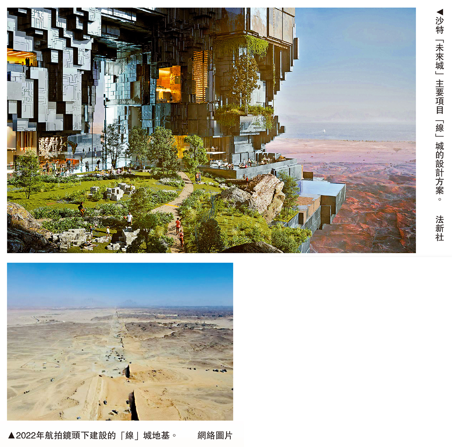 沙特王儲穆罕默德·本·薩勒曼2017年宣布雄心勃勃的「未來城」建造計劃,並形容其為「全球追夢者之地」。「未來城」項目的核心部分是在紅海沙漠區打造的新型環保智慧城市「線」城(The Line)。當局預計到2030年將有150萬居民在「線」城生活,到2045年常住人口增至900萬。