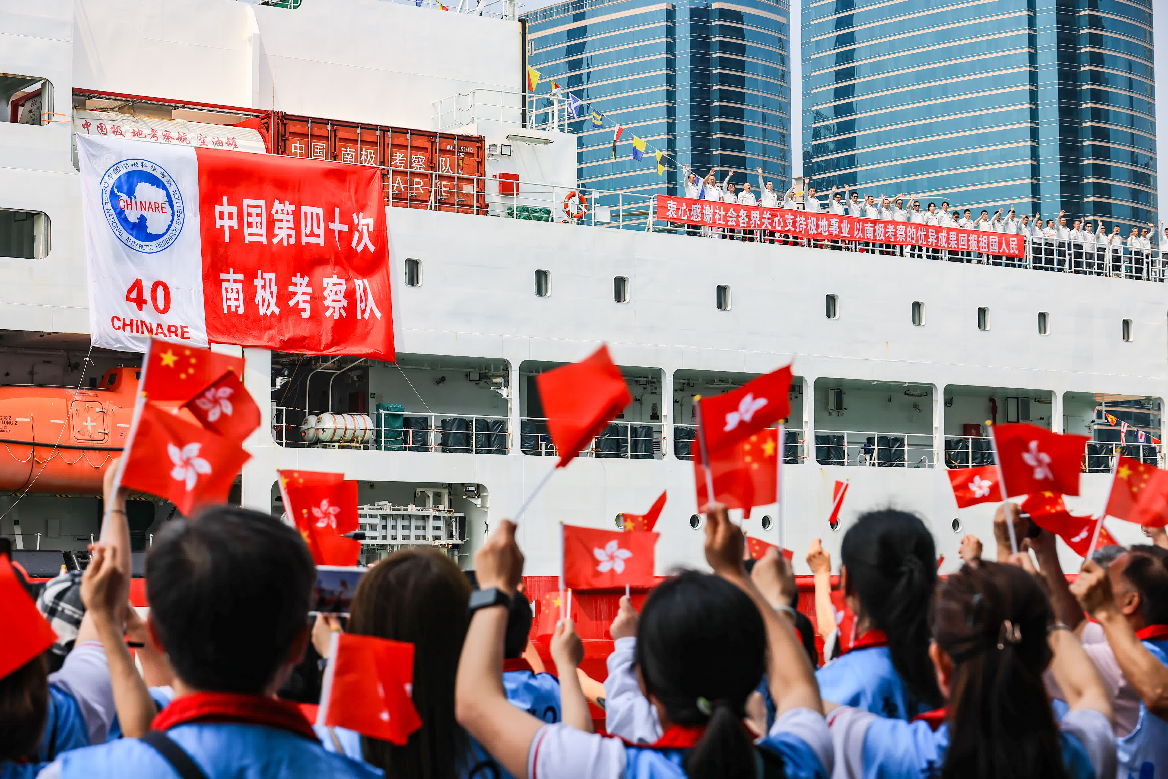大公文匯全媒體報道,國家第一艘自主建造的極地科考破冰船「雪龍2」號,完成歷史性五天訪港活動,今日(12日)下午結束公眾參觀後離港。「雪龍2」號訪港籌委會舉行簡單而隆重的送船儀式,送別這艘國寶級的極地科考破冰船,以感謝「雪龍2」號全體船員連日來,熱情接待香港巿民登船參觀,以及多位頂尖極地科學家,馬不停蹄地出席座談會及講座等活動。