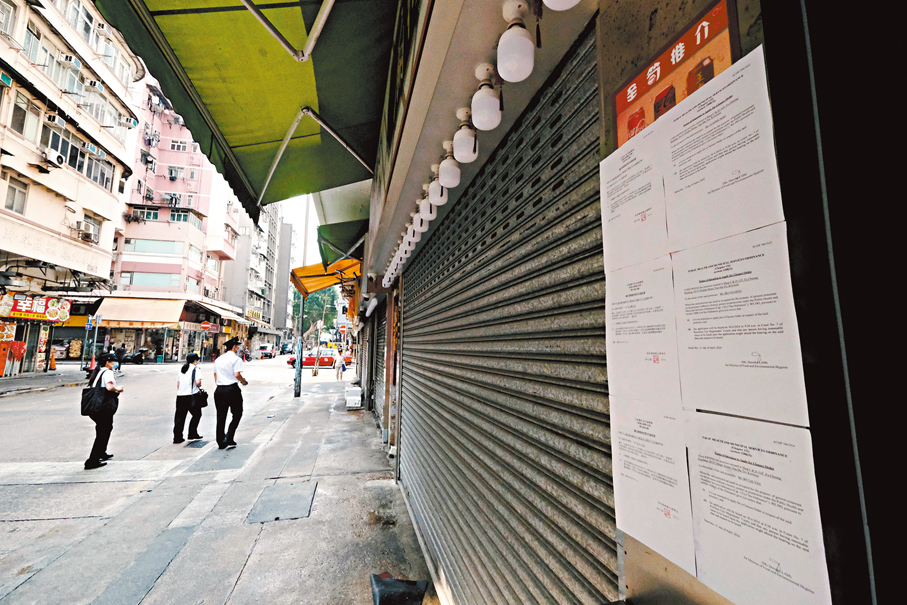 昨日上午10時許,食環署人員將「擬申請頒發封閉令的通知書」張貼於涉事食肆的鐵閘當眼處,並向食肆負責人和處所擁有人派遞該通知書。食環署表示,該兩間食物業處所分別為位於廟街29至35號地下C-D舖「廟街小廚」及A舖「聯發小廚」,均屬無牌經營,並長期霸佔行人通道和馬路,造成嚴重阻塞及環境衞生問題。