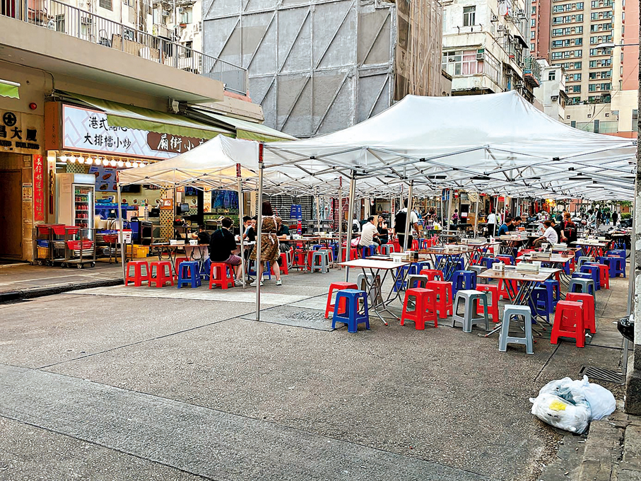 (香港文匯報記者 蕭景源、劉明)香港油麻地廟街愈夜愈旺,香港文匯報日前揭發廟街有兩間食肆「無法無天」,公然霸佔店前行人通道及馬路擺放「枱椅陣」做生意,造成嚴重阻塞、噪音及環境衞生問題,對鄰近居民構成極大滋擾。特區政府食物環境衞生署在過去兩年間針對其違規情況共提出306宗檢控,惟情況依舊。昨日上午,食環署在食肆門外貼出擬向法庭申請封閉令通知書,準備「封舖」,惟香港文匯報記者其後發現兩間涉事食肆在下午照常開門營業,其間食環署再度上門巡查,及要求食肆收回擺出路面的枱櫈,但在食環人員離開後,兩間食肆將枱櫈重新擺出街繼續做生意。