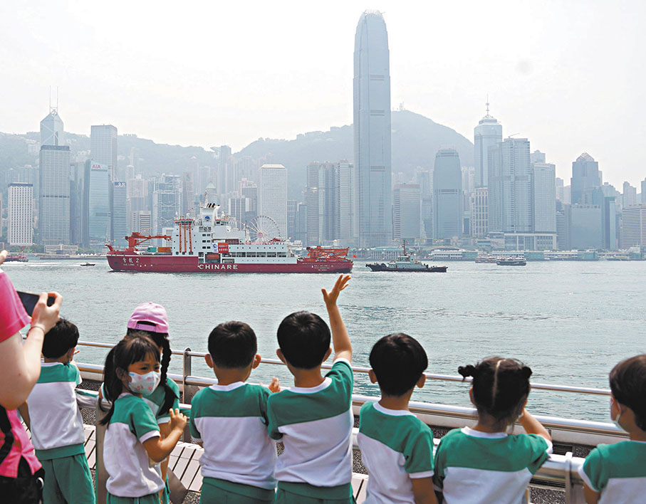 (香港文匯報記者 郭倩)國家第一艘自主建造的極地破冰船「雪龍2」號一連5天的訪港活動於昨日圓滿結束並離港,「雪龍2」號訪港籌委會昨日下午在海運碼頭為其舉行簡單而隆重的送別儀式。在港的5天期間,共超過7,200名市民登上「雪龍2」號參觀,連同一系列交流、文藝晚會及展覽等活動,估計約有近10萬人參與。「雪龍2」號訪港籌委會主席馬逢國期望更多市民關心氣候變化,激發年輕一代參與極地科研及投身相關工作。執行委員會主席何建宗更透露,早前已獲國家初步承諾,每年設兩個恒常名額供香港科研人員參與國家的極地研究。