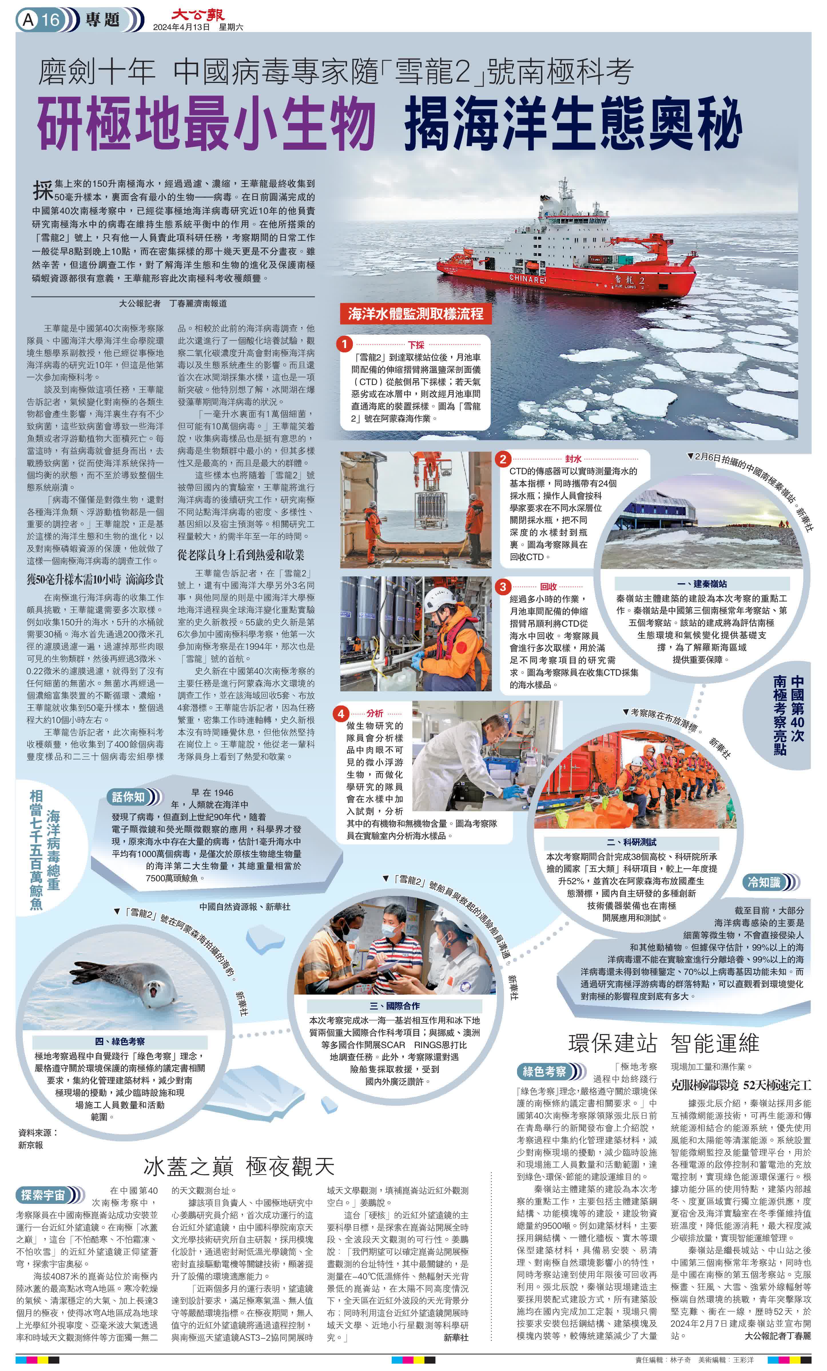 「病毒不僅僅是對微生物,還對各種海洋魚類、浮游動植物都是一個重要的調控者。」王華龍說,正是基於這樣的海洋生態和生物的進化,以及對南極磷蝦資源的保護,他就做了這樣一個南極海洋病毒的調查工作。