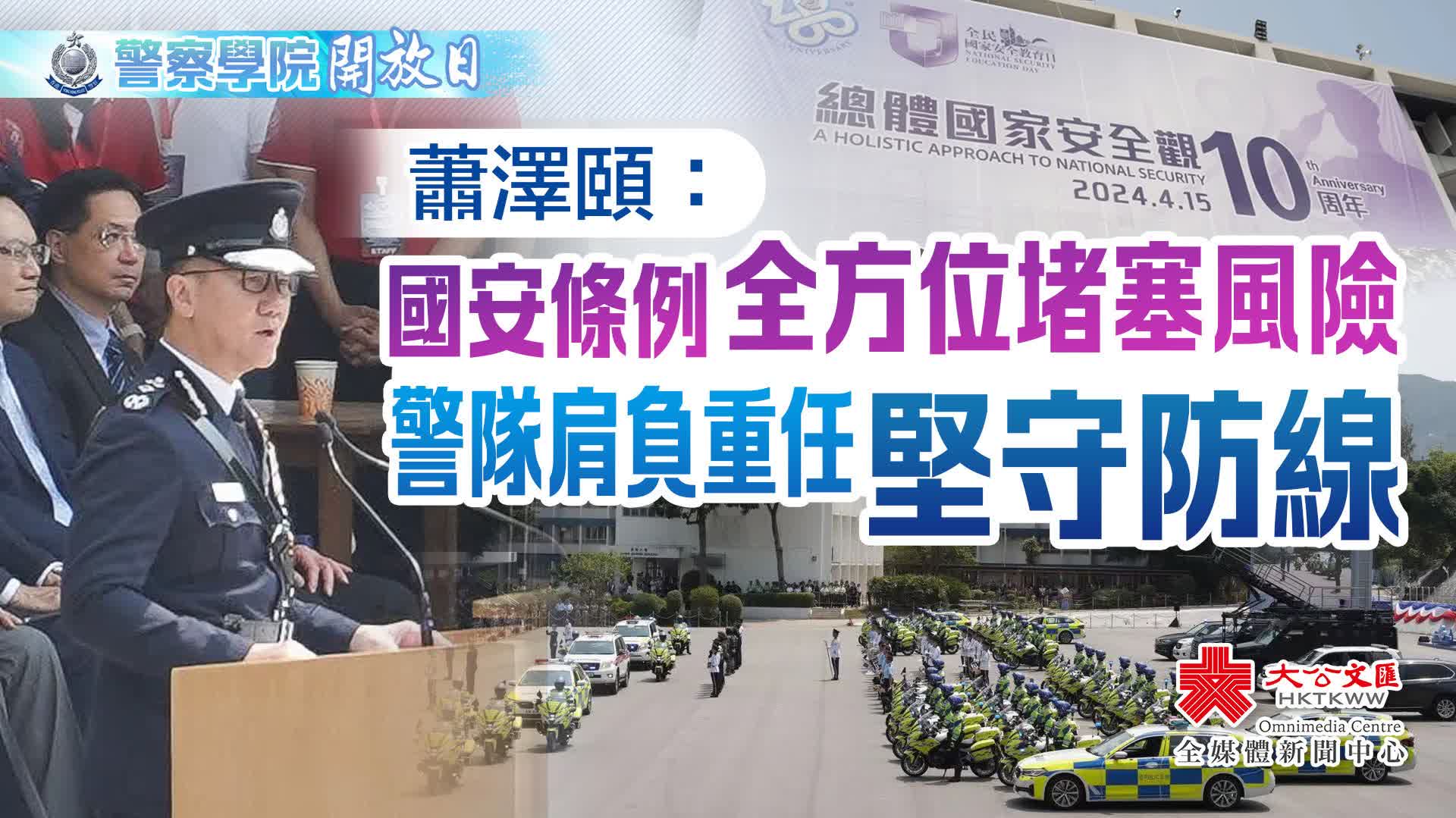 蕭澤頤在致辭中表示,今年是意義非凡的一年,《維護國家安全條例》通過並正式生效 ,全方位堵塞現時和未來國家安全風險。作為特區政府的主要執法機構之一,警隊將會繼續堅守國家安全防線。