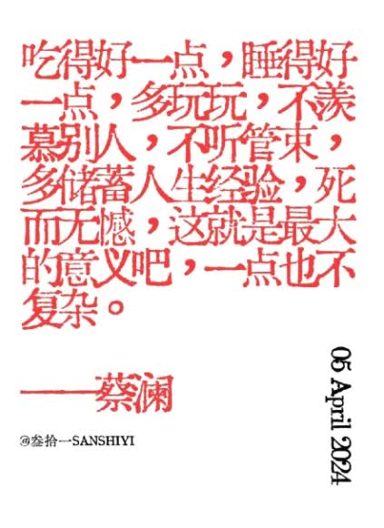 2022年,有內地記者問蔡瀾對於年輕人「躺平」的看法,他先是側耳傾聽,接着戰術後仰,最後輕飄飄地撂下四個字: