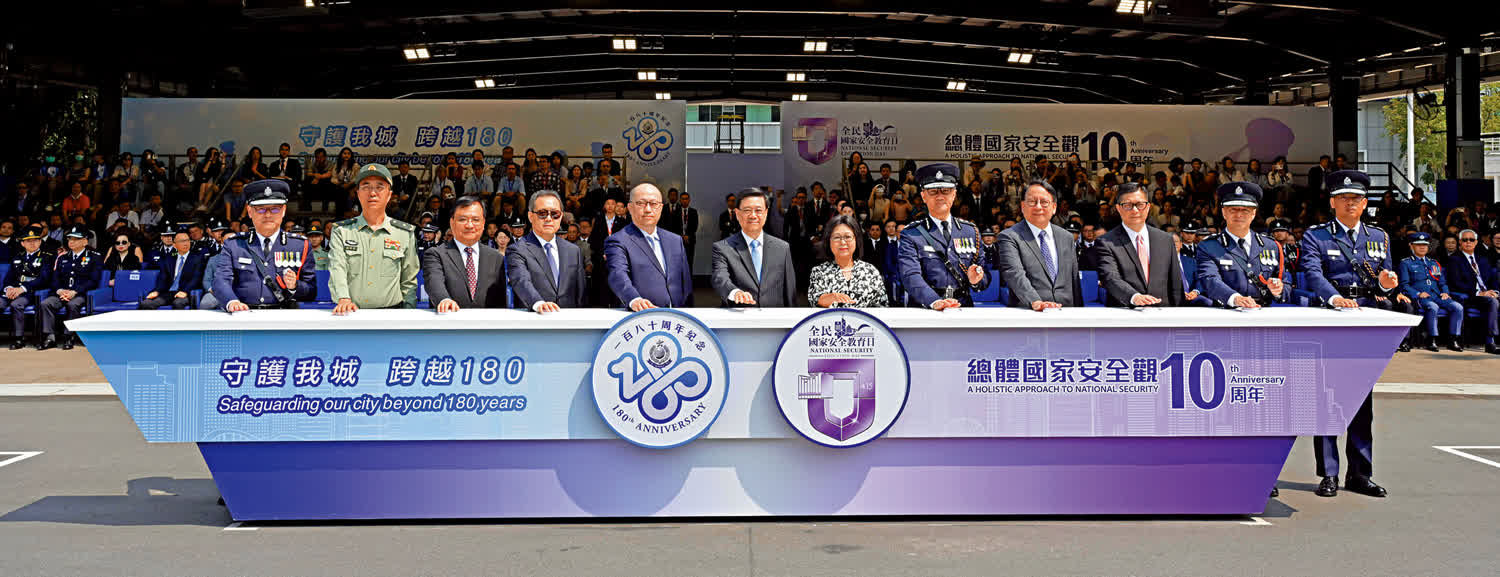 李家超指出,「有國安才有港安,有國安才有家安」,香港警隊是守護香港、維護國家安全的重要力量。他讚許警隊多年來面對槍林彈雨、天災人禍、社會暴亂、港版「顏色革命」,以及世紀疫情等一重又一重的困難,一關又一關的挑戰,始終團結一致、無畏無懼地堅守崗位,全力維護法紀和守護市民。「香港多年來被譽為全球最安全的城市之一,警隊居功至偉,任重道遠」。他代表特區政府及全港市民肯定警隊的工作,感謝警隊為香港安全所作出的貢獻。