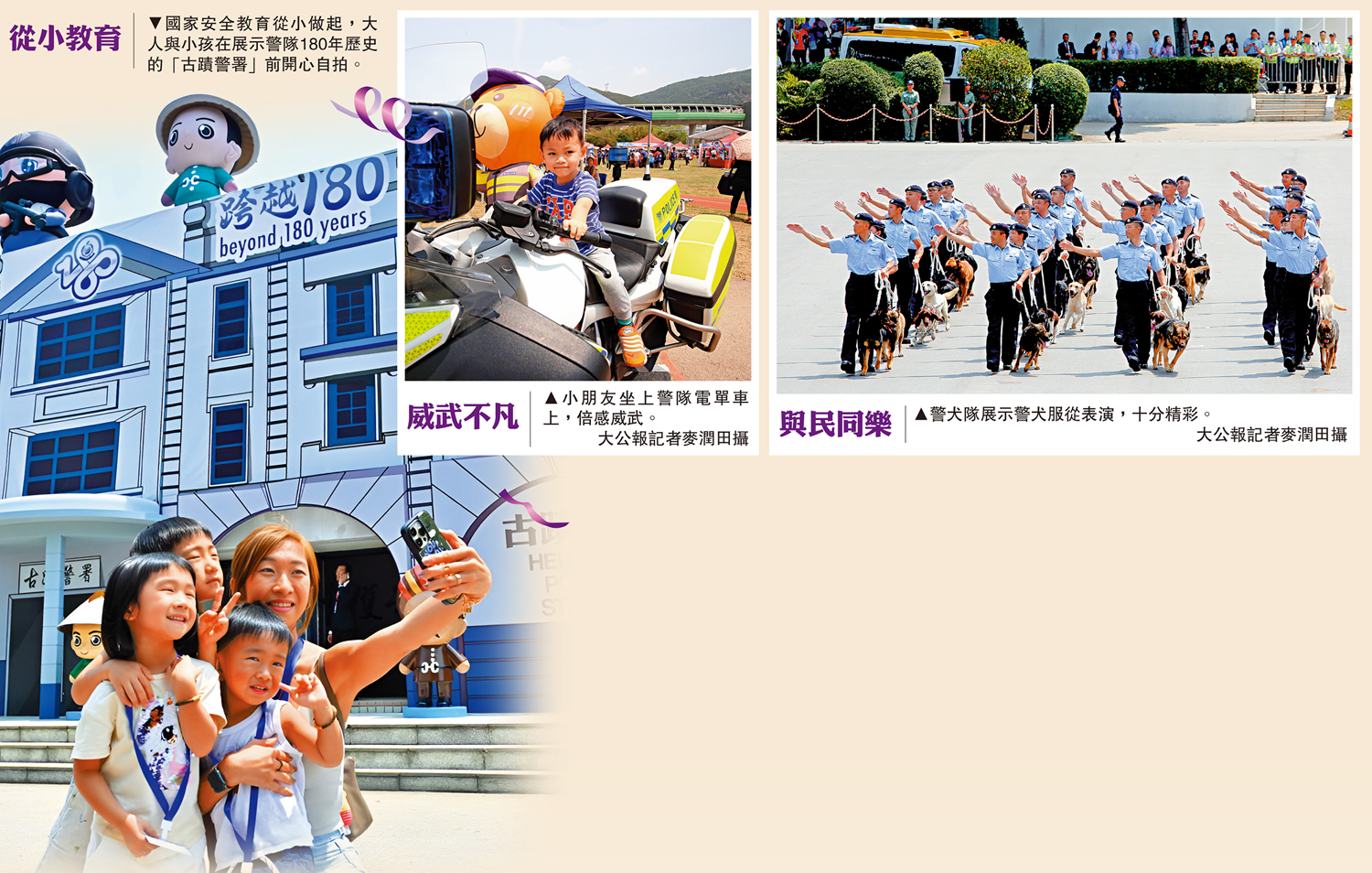 (大公報記者 吳俊宏)升旗儀式、中式步操、槍械展示、戰術演練……在全民國家安全教育日前夕,香港警務處昨日舉行「全民國家安全教育日暨香港警隊180周年警察學院開放日」,活動上一連串精彩紛呈的表演,贏得2500多名出席活動市民的熱烈掌聲。