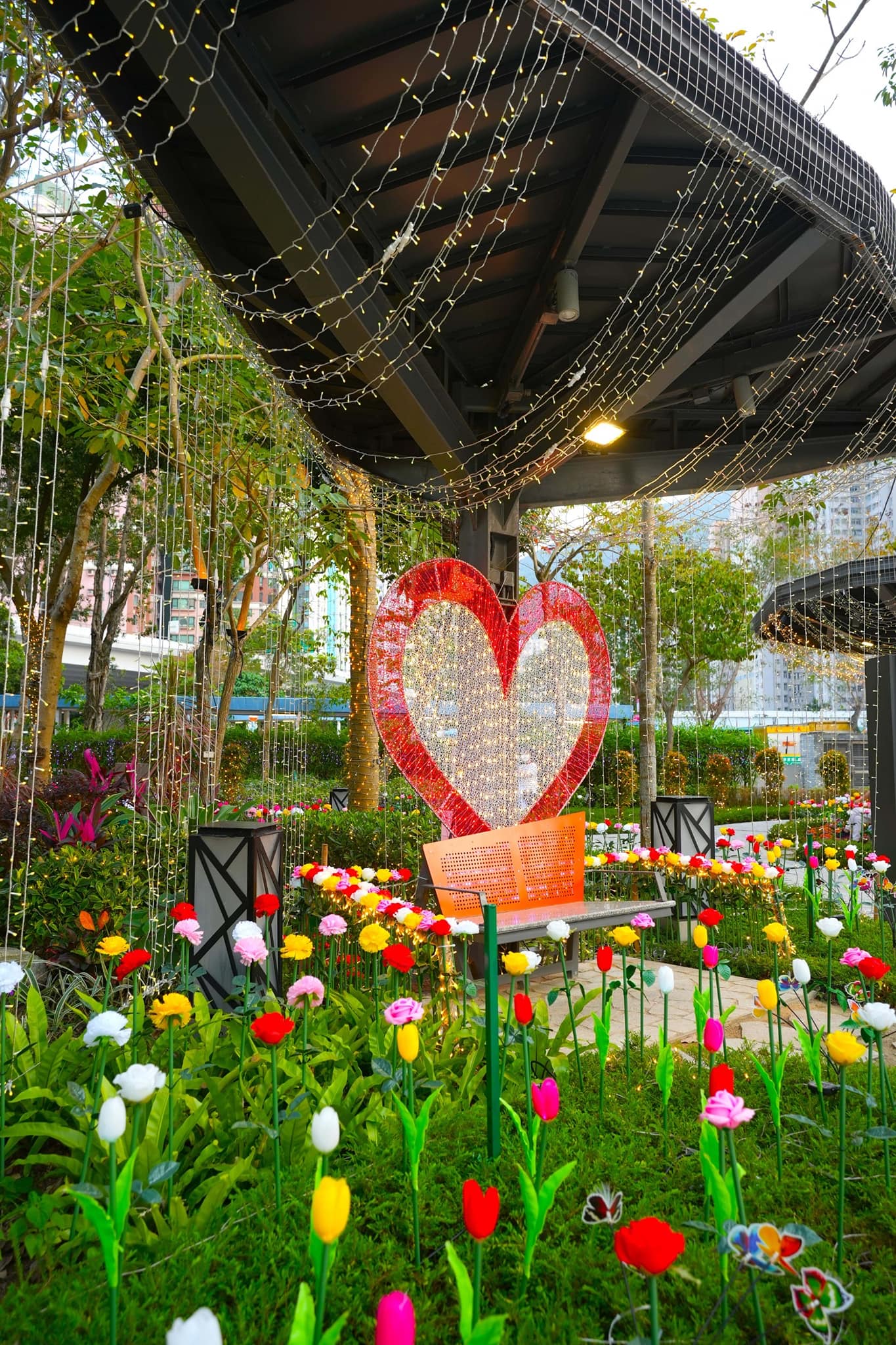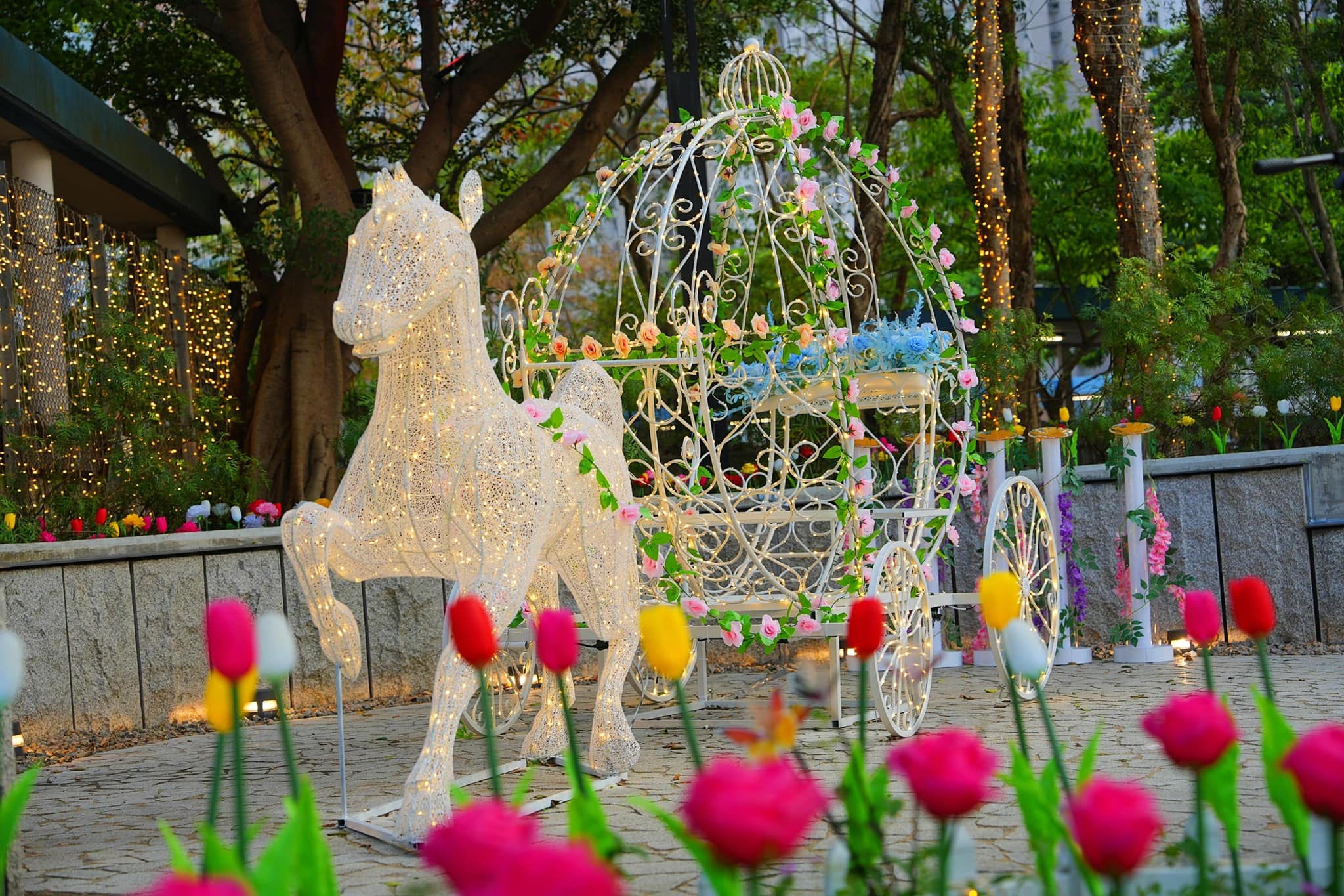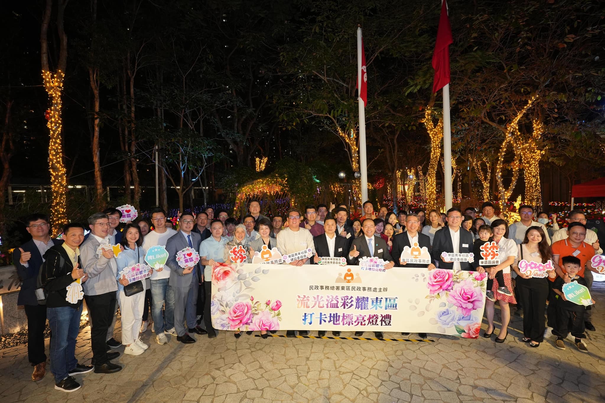 大公文匯全媒體報道,東區又添人氣打卡點,「流光溢彩耀東區」近日進行亮燈儀式,民政總署副署長易志宏出席儀式。約800平方米的東區文化廣場花園布置超過8000枝彩色LED花,遊人可以沉浸在童話故事般的花園內,在發光馬車同設有心型燈飾的涼亭前打卡,感受浪漫一刻。場內亦設有互動投影裝置,市民晚上行過時,花朵就會盛開,讓人心花怒放!