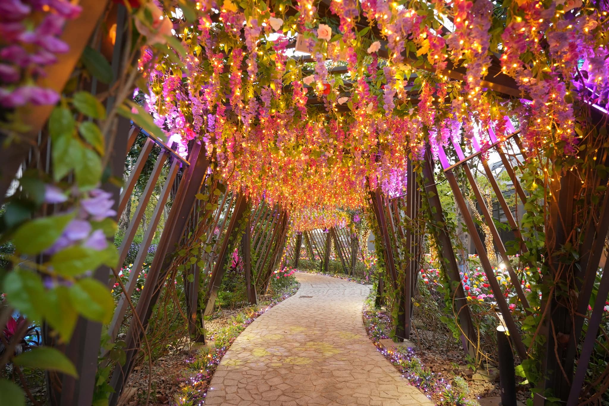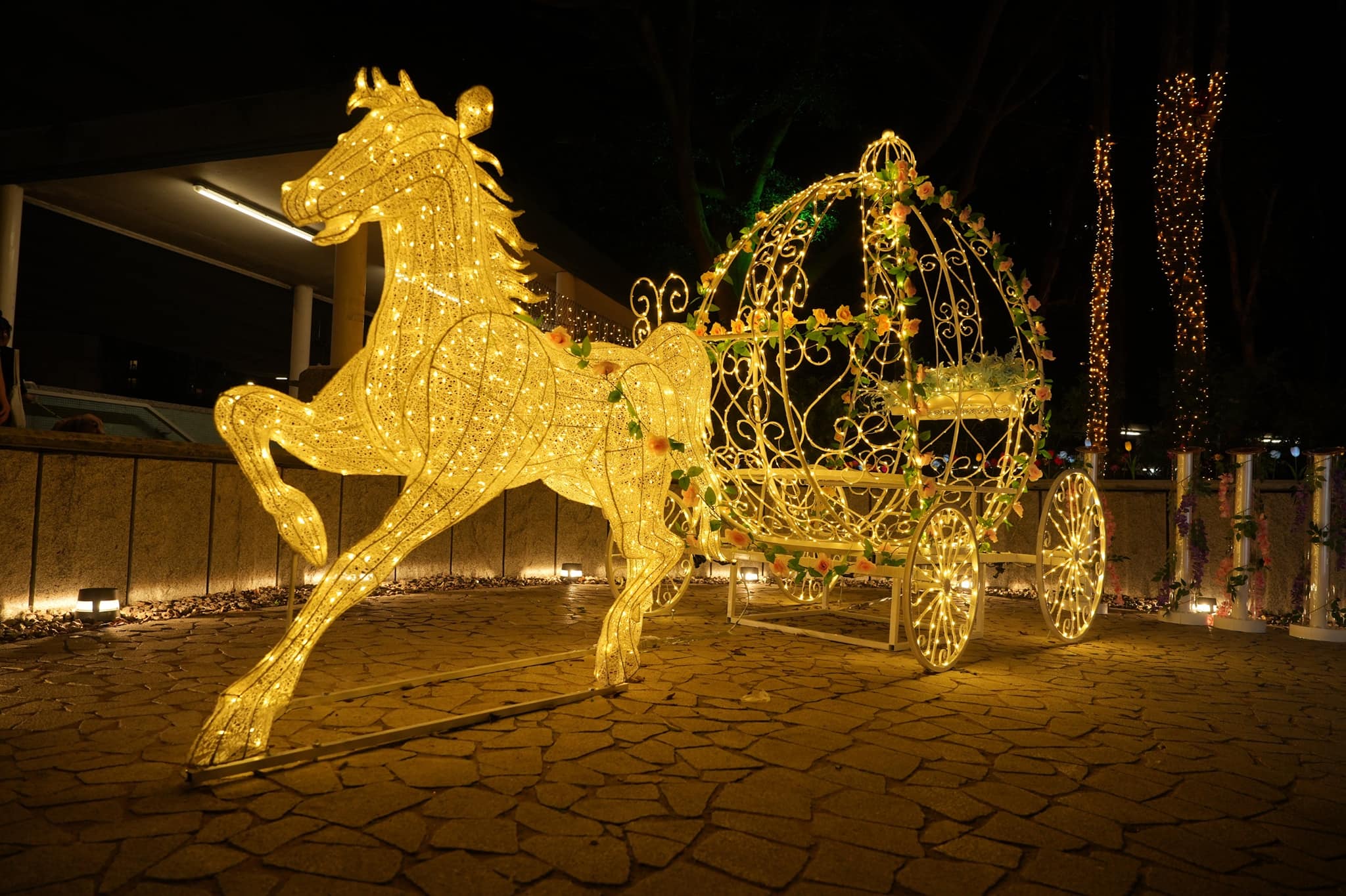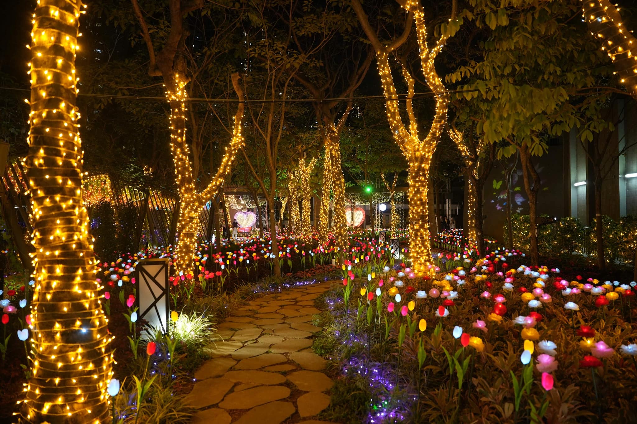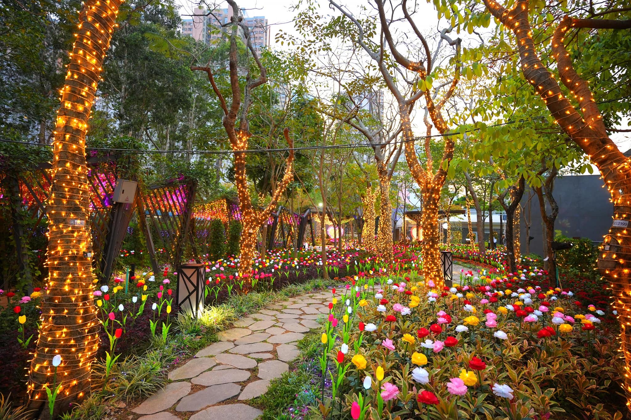 大公文匯全媒體報道,東區又添人氣打卡點,「流光溢彩耀東區」近日進行亮燈儀式,民政總署副署長易志宏出席儀式。約800平方米的東區文化廣場花園布置超過8000枝彩色LED花,遊人可以沉浸在童話故事般的花園內,在發光馬車同設有心型燈飾的涼亭前打卡,感受浪漫一刻。場內亦設有互動投影裝置,市民晚上行過時,花朵就會盛開,讓人心花怒放!