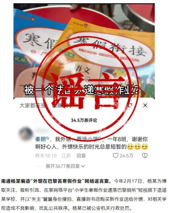 (大公文匯網記者 任芳頡 郭瀚林 凱雷)兩個月前,網紅「貓一杯」「在巴黎拾到小學生秦朗作業本」的視頻爆火,引發全網「尋找小學生秦朗」,假冒「秦朗」舅舅等親屬的帳號層出不窮,最終以該網紅宣告「秦朗媽媽找到了」而劇終。萬萬沒有想到,兩個月後浙江杭州西湖警方發布藍底白字通告:「在巴黎拾到小學生秦朗作業本」視頻系編造,公安機關已依法對相關人員作出行政處罰。從全網認識「丟作業的秦朗」到全網認識「造新聞的網紅」,當時的流量有多大,現在的流量也有多大。繼網紅「貓一杯」亮相道歉後,其在微博、抖音、視頻號多個平台上帳號被查封,持續造假引流欺詐輿論,可謂自食惡果。這是內地公安機關、網信部門聯合多個平台打擊虛假新聞、清朗網絡空間的又一典型案例。