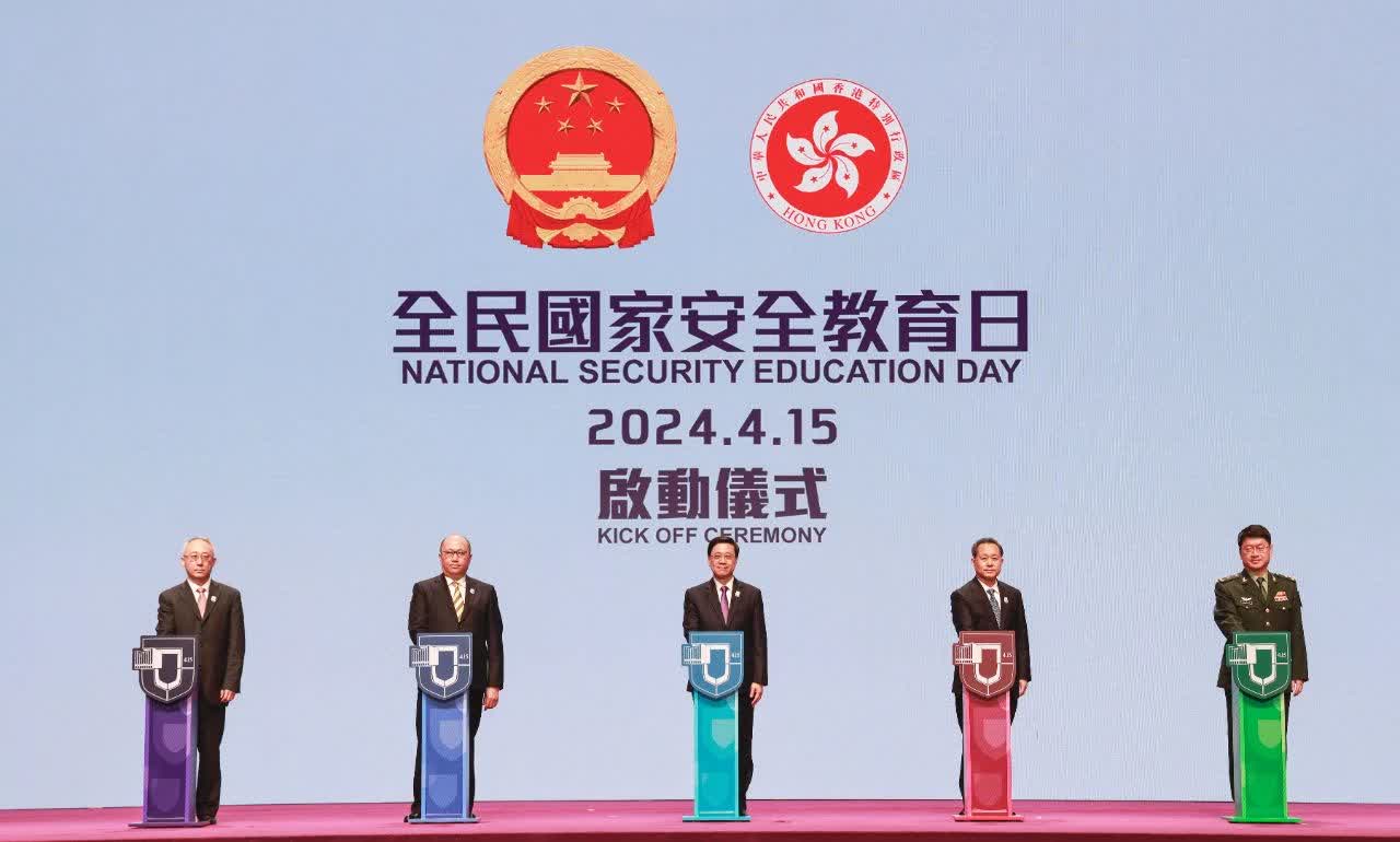 據中央政府駐港聯絡辦官網消息,4月15日,香港「全民國家安全教育日2024」活動開幕典禮在香港會展中心舉行。中央港澳工作辦公室主任、國務院港澳事務辦公室主任夏寶龍在北京以視頻連線方式出席開幕典禮並作主旨講話。特區行政長官、國安委主席李家超,中央政府駐港聯絡辦主任、特區國安事務顧問鄭雁雄,以及駐港國安公署署長董經緯、外交部駐港公署署理特派員李永勝、解放軍駐香港部隊副政委王兆兵等擔任主禮嘉賓並致辭。