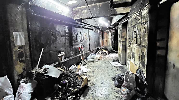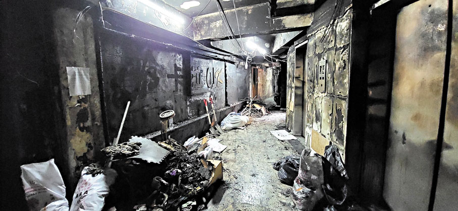 香港文匯報記者進入大廈了解時,發現大廈升降機仍然暫停服務,沿樓梯步行而上,但見火警重災區的一樓及二樓滿目瘡痍。其中在一樓、三樓及五樓經營賓館的陳女士稱,一樓的賓館已付之一炬,「重新安裝一道防火門也要幾千元」,估計損失數十萬元;她又指,位於三樓的賓館因火警後暫停水電供應無法營業,連日來已損失數萬元,「訂房全部取消……幾時(至)有水有電畀我哋?我好想知,𠵱家好失望……」