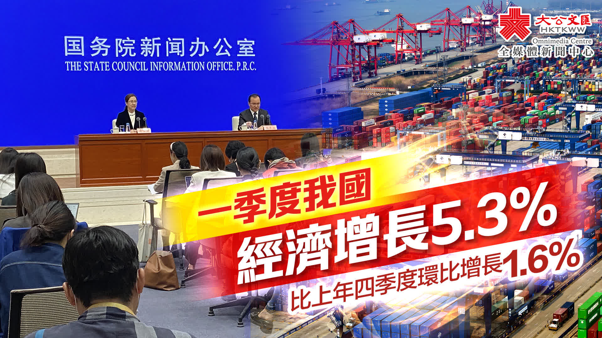 (大公文匯網記者 朱燁 北京報道)國務院新聞辦公室於2024年4月16日上午舉行新聞發布會。國家統計局副局長盛來運介紹2024年一季度國民經濟運行情況,並答記者問。會上透露,初步核算,一季度國內生產總值(GDP)296299億元,按不變價格計算,同比增長5.3%,比上年四季度環比增長1.6%。