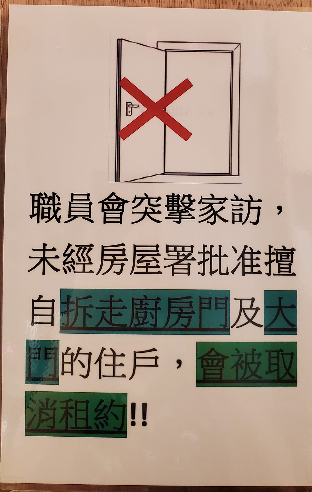 其他有網友表示「廚房門」及「大門」裝有晶片,如果拆走必須裝回,或經過房屋署批准就無問題;又有「過來人」稱「廚房門」及「大門」兩樣都拆曬才會被取消租約,並透露有機會申訴。