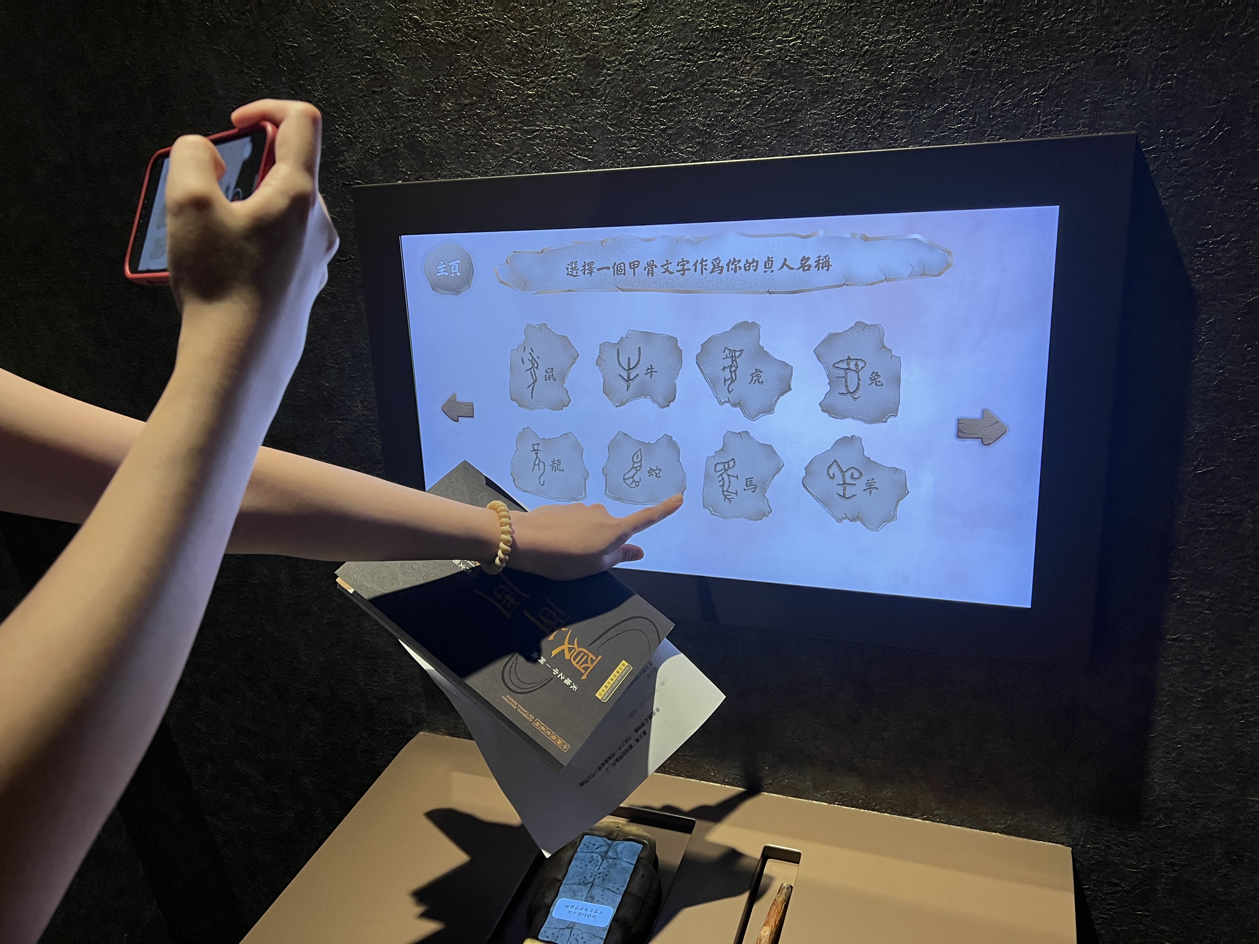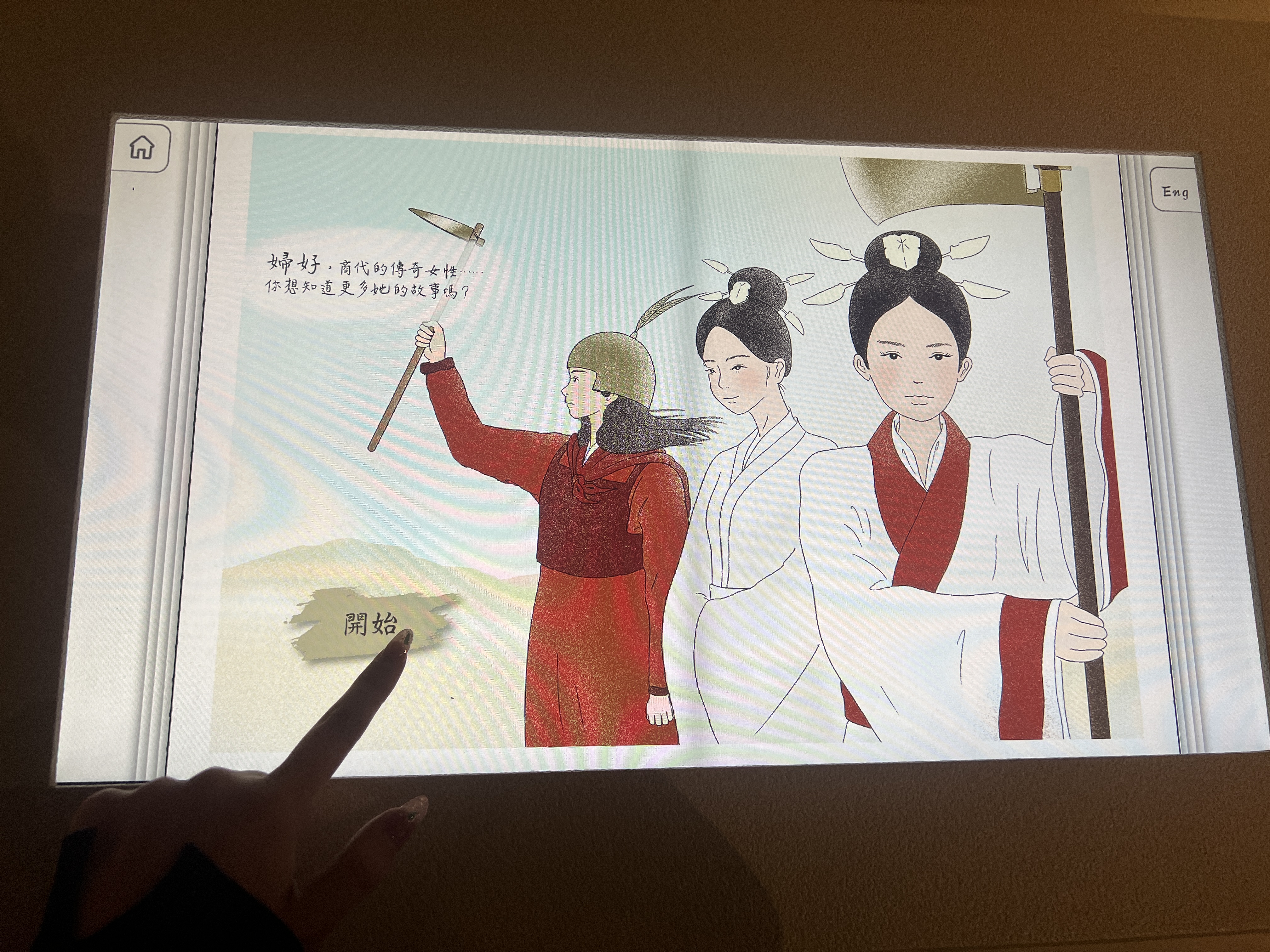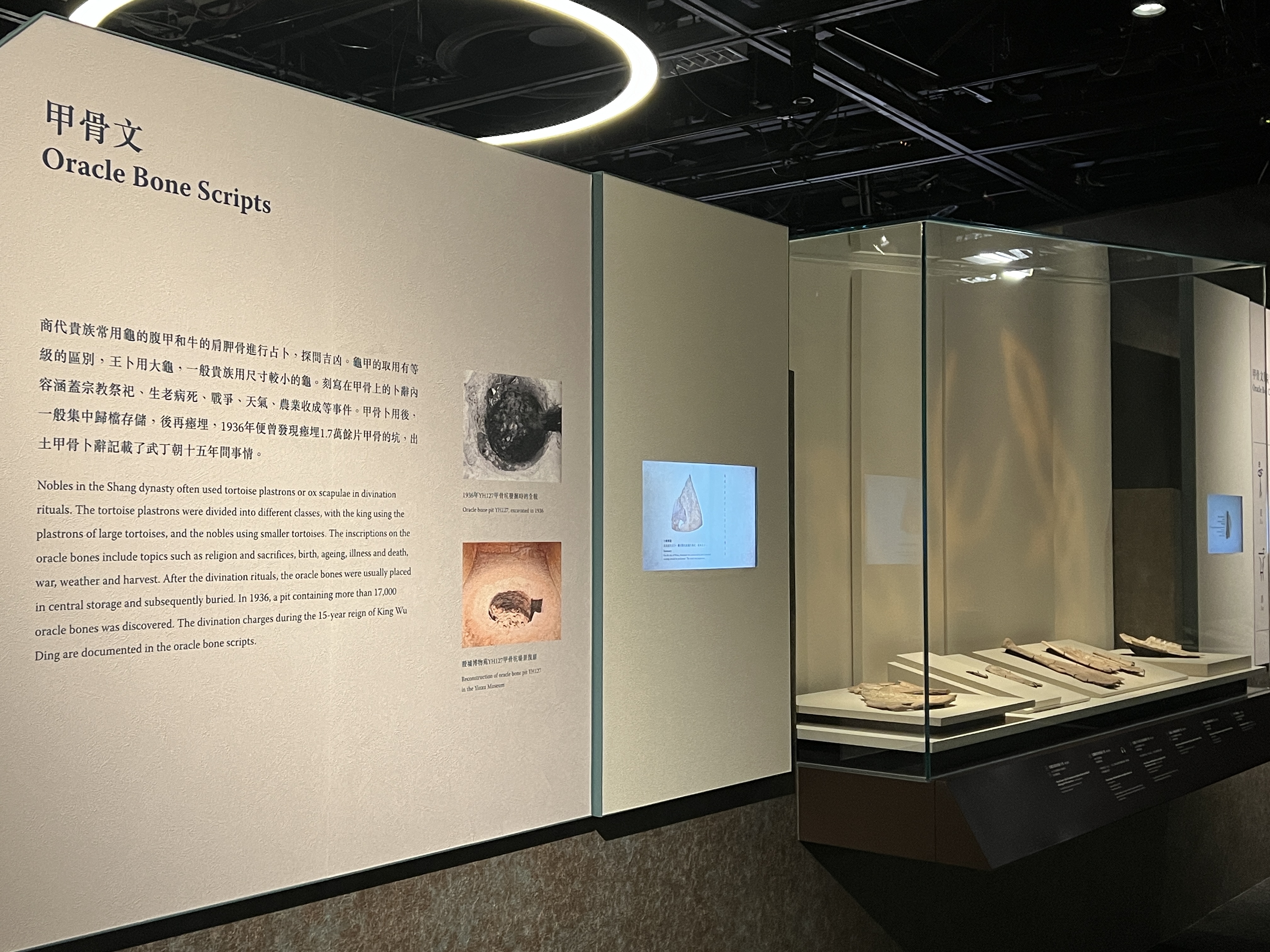 科技亦是呈現文物的得力幫手,幾千年前的夏商周歷史之於香港市民難免陌生,今次展覽便採取了多種互動形式娓娓道來這些遙遠的故事。「展館裏面有一面很大的牆,展示不同的青銅器型和它的讀音」,許小梅介紹,整個展覽中有很多不同的「現代手法」方便大家去認識歷史。譬如在商代有一位叫做婦好的人物,展覽中的很多文物都和這位女士有關係。為介紹這位重要的女士,展覽就採用漫畫形式帶大家了解她在商代的不同角色。此外,占卜是商代常見的一項儀式。想知道商代人究竟怎樣去占卜?展館內便有一個電子交互遊戲帶大家體驗燒龜殼、問問題等占卜全流程,理解商代占卜文化。
