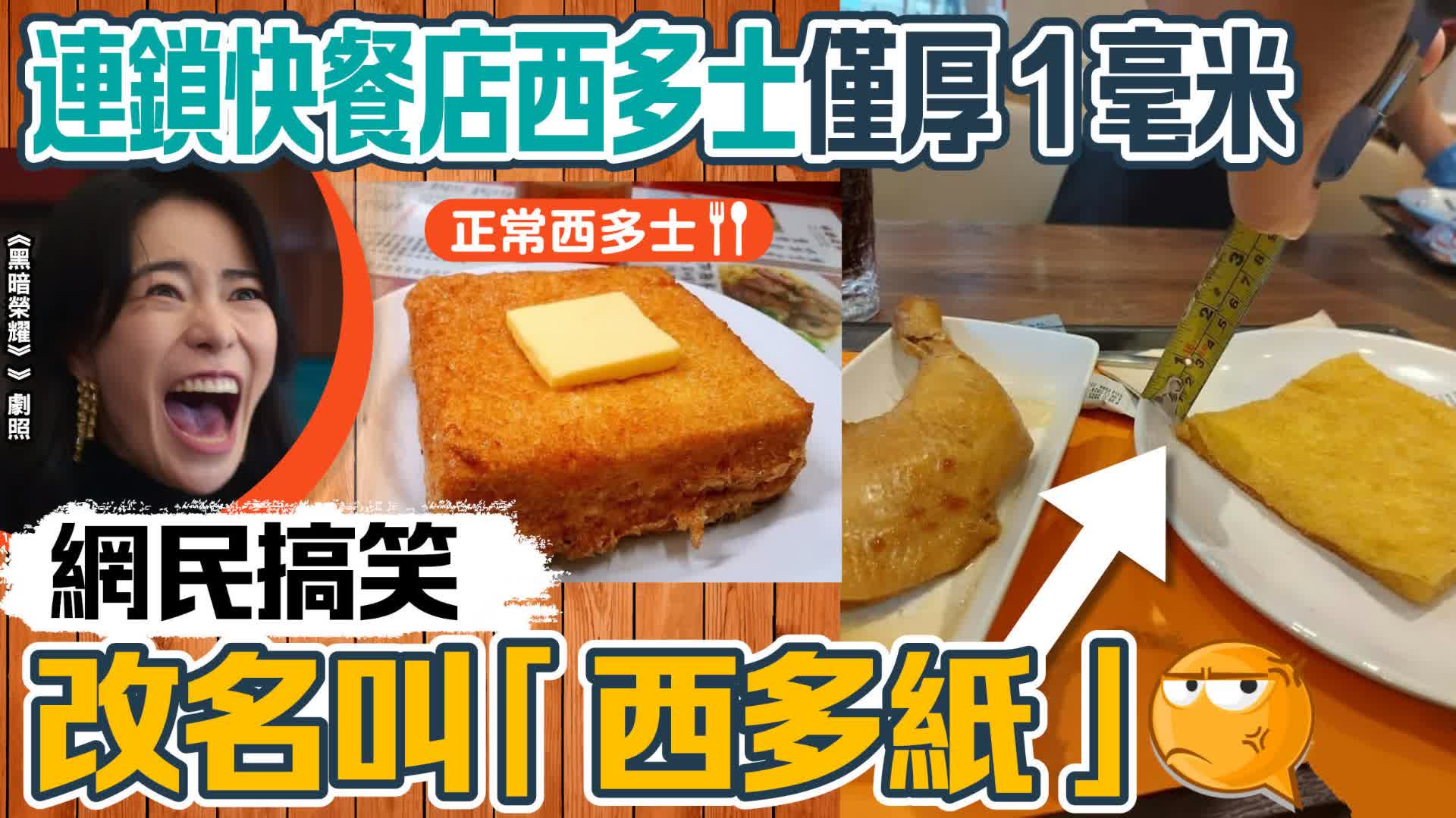 大公文匯全媒體報道,不少人都想歎一個下午茶鬆一鬆,最近有網民光顧大型連鎖餐廳,點了雞髀配西多士套餐,發現西多士竟然只有1毫米厚,諷刺「皮薄餡靚」。帖文引來網民熱議,不少人搞笑改名叫「西多紙」、「西多片」、「紙西多」、「西多咭」。