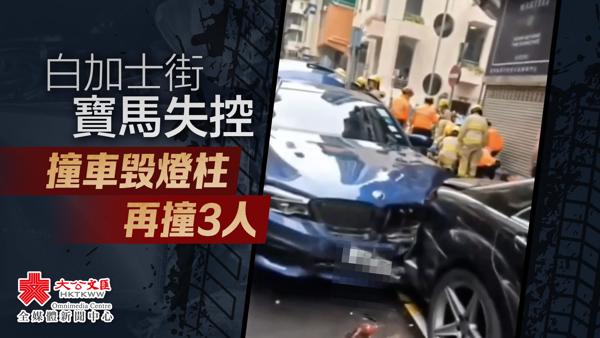 現場消息指,涉事藍色寶馬沿白加士街行駛時,突然失控撞向右邊其中一部黑色七人車,繼而再衝向左邊行人路並撞毀路柱,其間撞到三名途人,又撞向兩部停泊在路邊的私家車,最終停下。