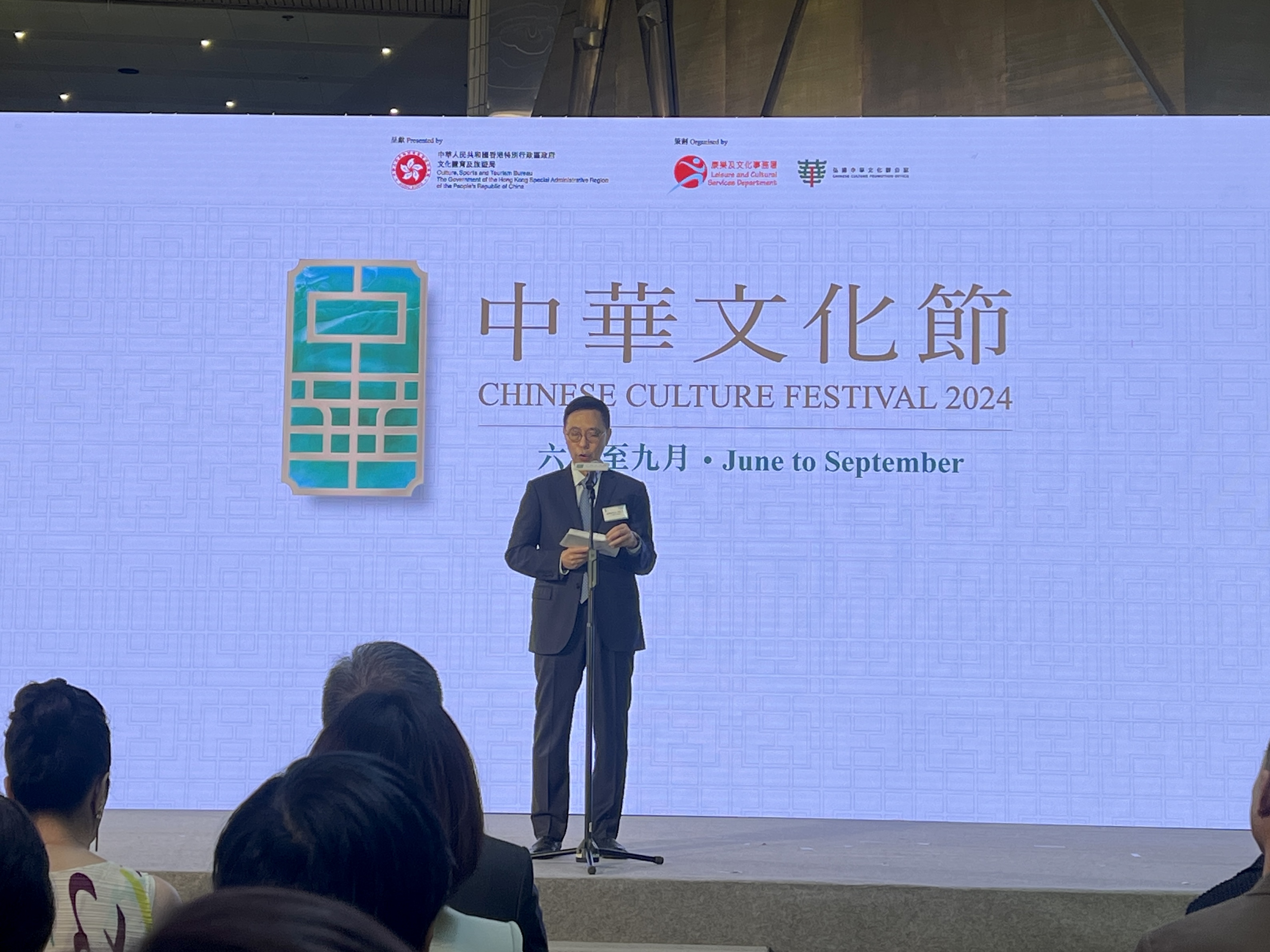 文化體育及旅遊局局長楊潤雄致辭指,過去幾月香港充斥着濃厚的文化氣氛,視覺藝術、文藝演出、文學欣賞等活動展現了香港文化多元精彩、自成一格的特色。他介紹,首屆「中華文化節」內容豐富多彩,包括「中國戲曲節」精選劇目、獲國家藝術基金肯定的本地優秀作品、與多個文藝組織合作舉辦的音樂、舞蹈及跨媒體演出、電影、展覽、講座等,務求讓市民有更多機會全方位欣賞和領略中華文化的精髓,提升市民的國民身份認同及文化自信,推動中華優秀傳統文化創造性轉化和創新性發展。而「中華文化節」內大部分節目的門票由明日(19日)起在城市售票網及西九文化區戲曲中心票務處發售,相關的宣傳活動亦會全面展開。