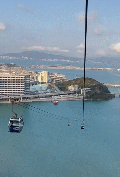 🚠香港著名的纜車系統,連接着大嶼山的昂坪村和大嶼山上的天壇大佛,從澳門進入香港的話,乘坐大巴就可以看到昂坪360的纜車,天氣好的時候乘坐纜車真的是太壯觀啦,穿過一片一片湛藍的海,最後可以看到天壇大佛和心經簡林。