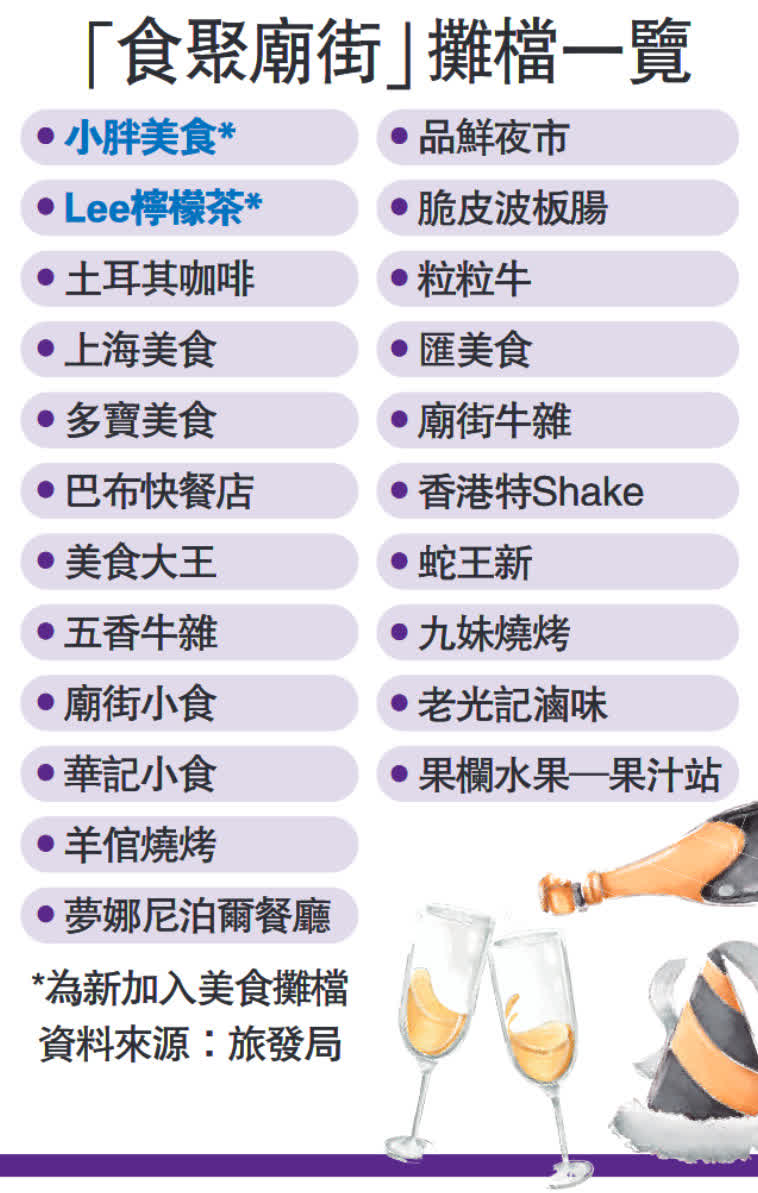 旅發局表示,廟街推廣項目營運期將延長半年至今年12月,並推出第二輪宣傳。包括將特色燈籠布置範圍延長300米,由「食聚廟街」攤檔段擴展至現時零售攤檔部分,以及邀請一代「廟街歌王」尹光到廟街重新製作其經典歌曲《廟街》音樂短片等。而位於牌坊位置的「食聚廟街」,亦推出新的小食,包括近期大熱的手打檸檬茶以及冰糖水果串,連同其他特色美食攤位合共22檔,加上10個懷舊小食流動檔攤。